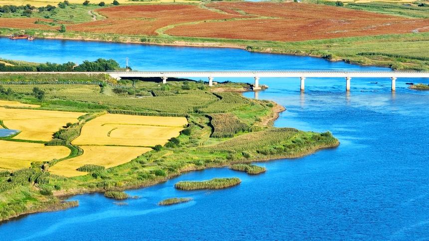 호란하강반 가을바람이 스치며 노란 벼논과 가지런한 이랑이 어우러져 대지의 조색판을 이루고 있다.