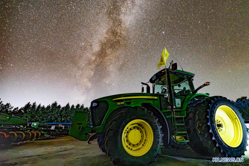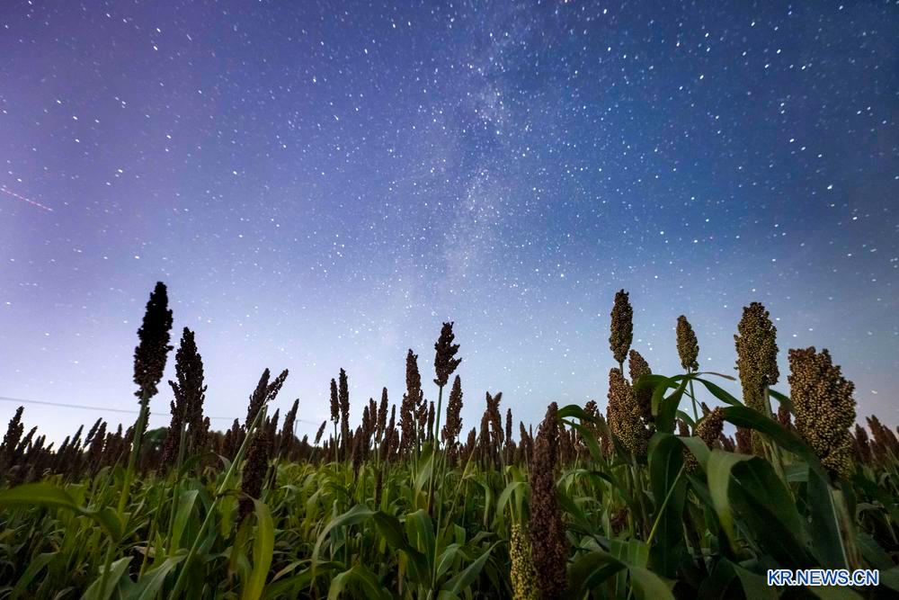 수확기에 접어든 흑룡강성에 위치한 북대황의 논밭에서 무성하게 자란 농작물이 밤하늘에 펼쳐진 은하수를 배경으로 고즈넉한 풍경을 연출하고 있다.