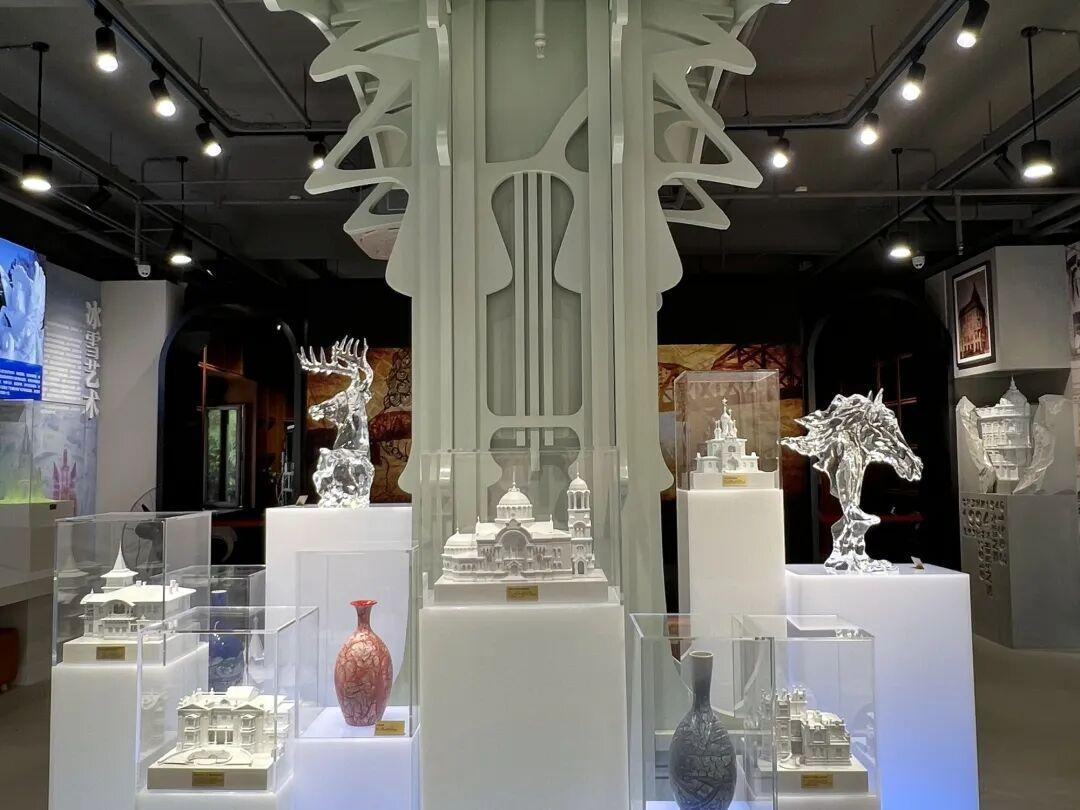 빙설예술전시구역에서는 할빈빙설예술의 발전 과정을 그림과 글로 차분히 이야기하고 있다. 초기의 아이스댄스 예술부터 얼음판화, 얼음꽃 도자기, 얼음등, 눈 조각 그리고 오늘날 국제적으로 명성을 떨치고 있는 얼음과 눈의 세계, 태양도 눈박람회 등 대형 얼음과 눈의 경관 조성에 이르기까지 할빈의 얼음과 눈 예술은 끊임없는 혁신을 통해 세계로 나아가고 있다. 문자로 할빈의 빙설문화 이야기가 기록되여 있어 빙설 예술가들의 창작 이야기를 전하고 있으며 관광객들이 빙설예술 뒤에 담긴 도시 정신과 문화적 의미를 느낄 수 있다.