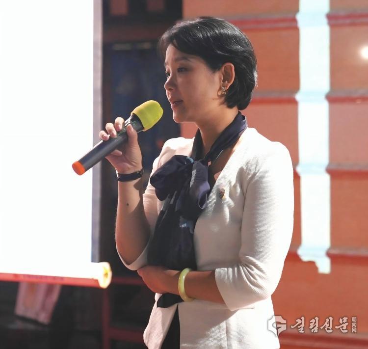 축사를 하고 있는 《길림신문》사 부총편 유창진