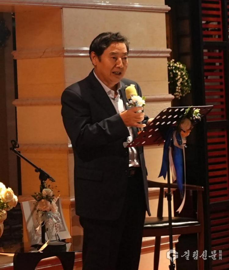 축사를 하고있는《장백산》잡지사 전임 사장 겸 주필 리여천