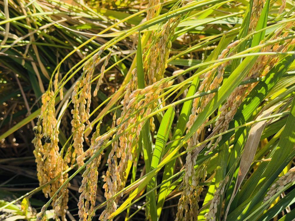 오상시 한 논에서는 이삭의 무게를 못이긴 벼줄기가 굽혀져 있다.