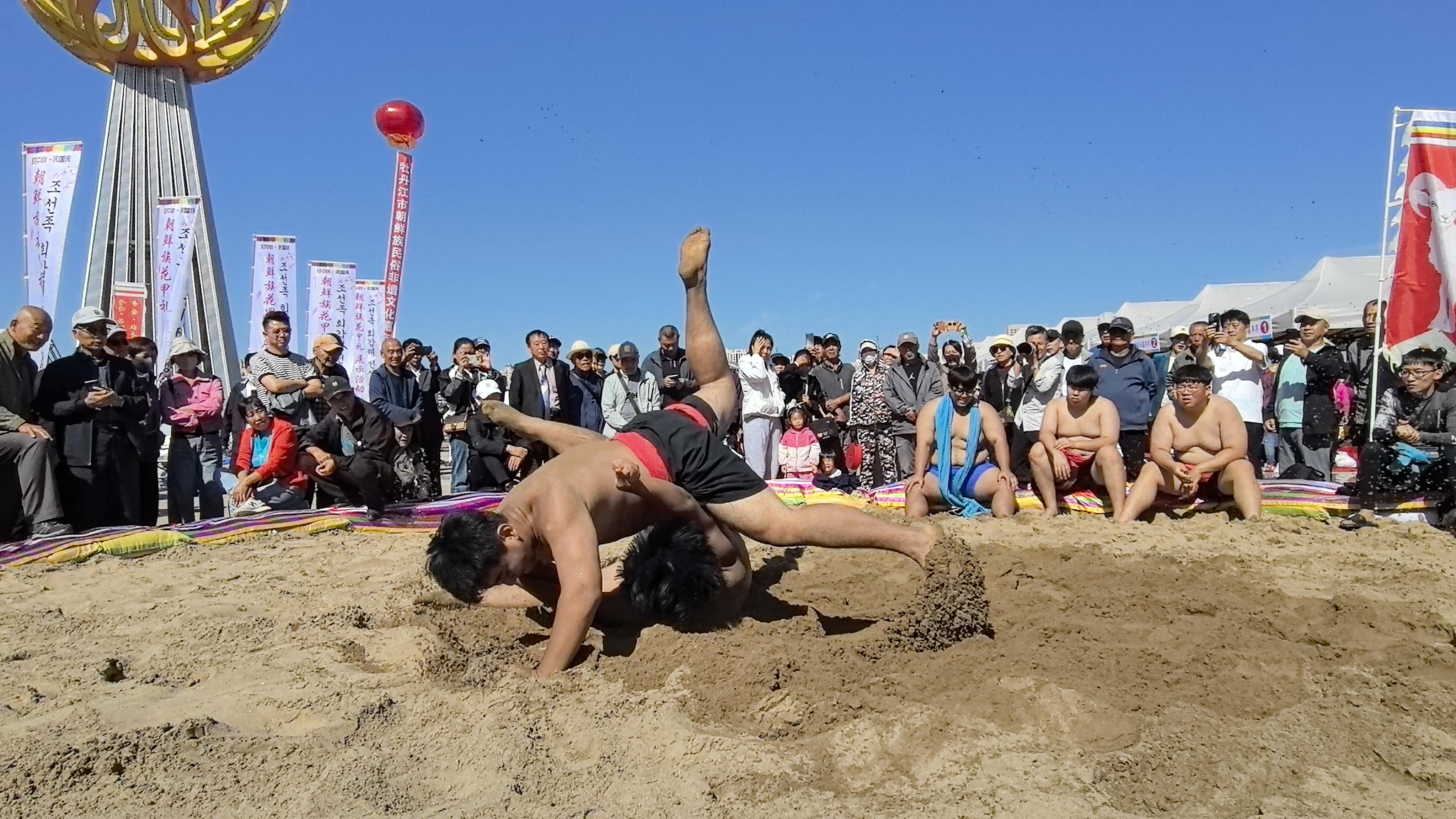 정오가 되자 광장분위기는 더욱 활기를 띠었다. 연길시체육학교 소속 전문 운동선수들은 시민들을 위해 스릴 넘치는 조선족 '널뛰기'와 힘과 지혜를 겨루는 '씨름' 시연을 선보였다. 공중에서 공중제비를 도는 운동선들의 날렵한 모습과 씨름꾼들의 힘과 지혜의 대결은 관중들의 련속적인 탄성과 갈채를 이끌어냈으며 중국 국가급무형문화재 스포츠종목의 독특한 매력을 유감없이 보여주었다.