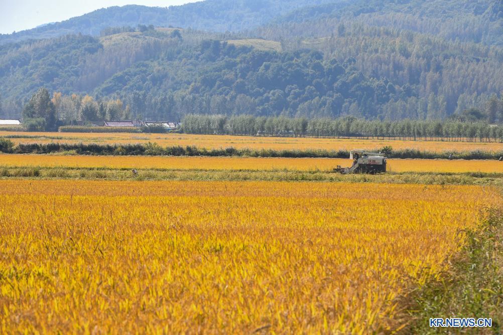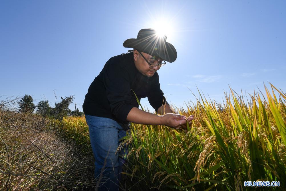 황금빛 논에 펼쳐진 내몽골 '논벼 예술'