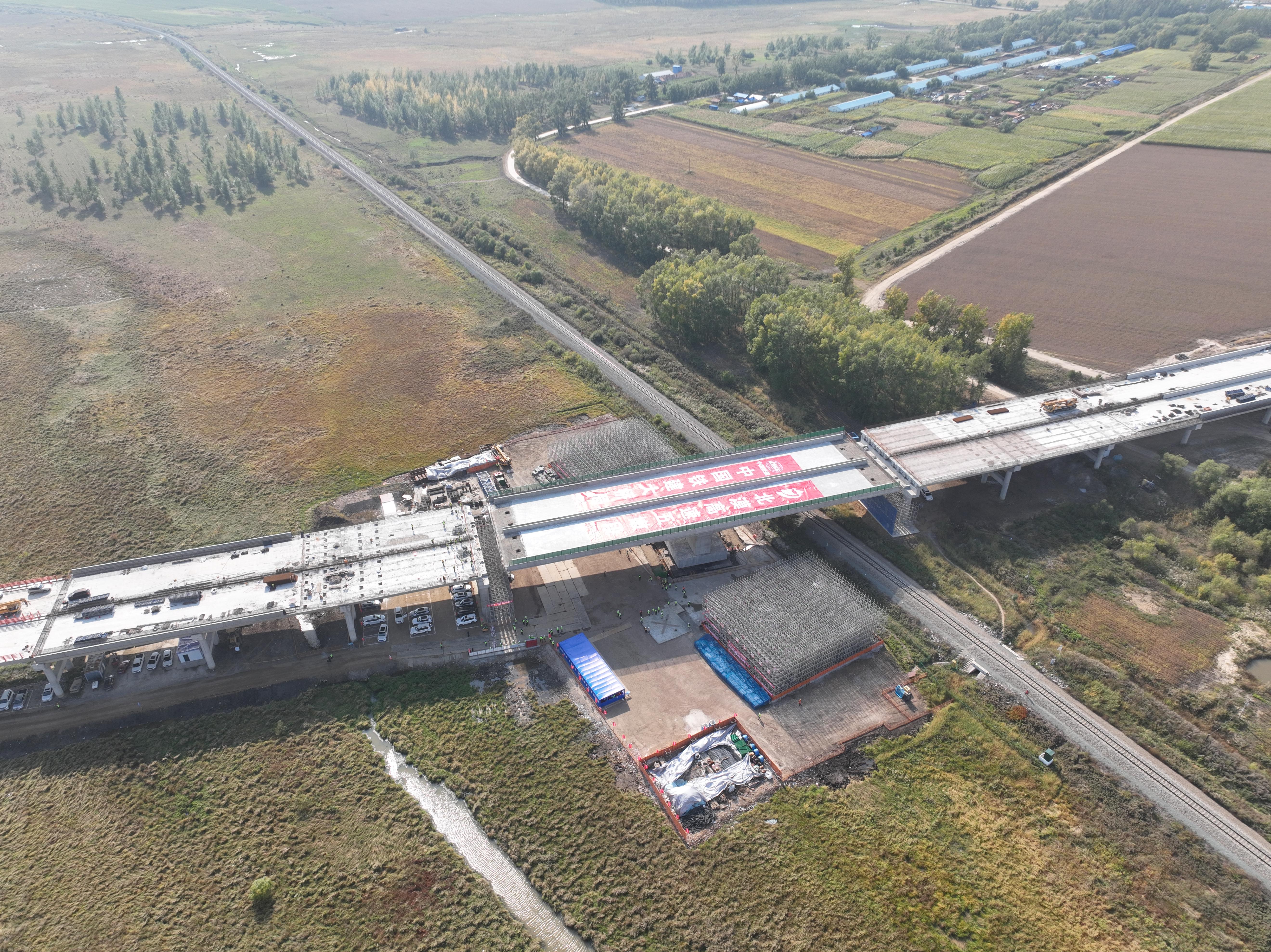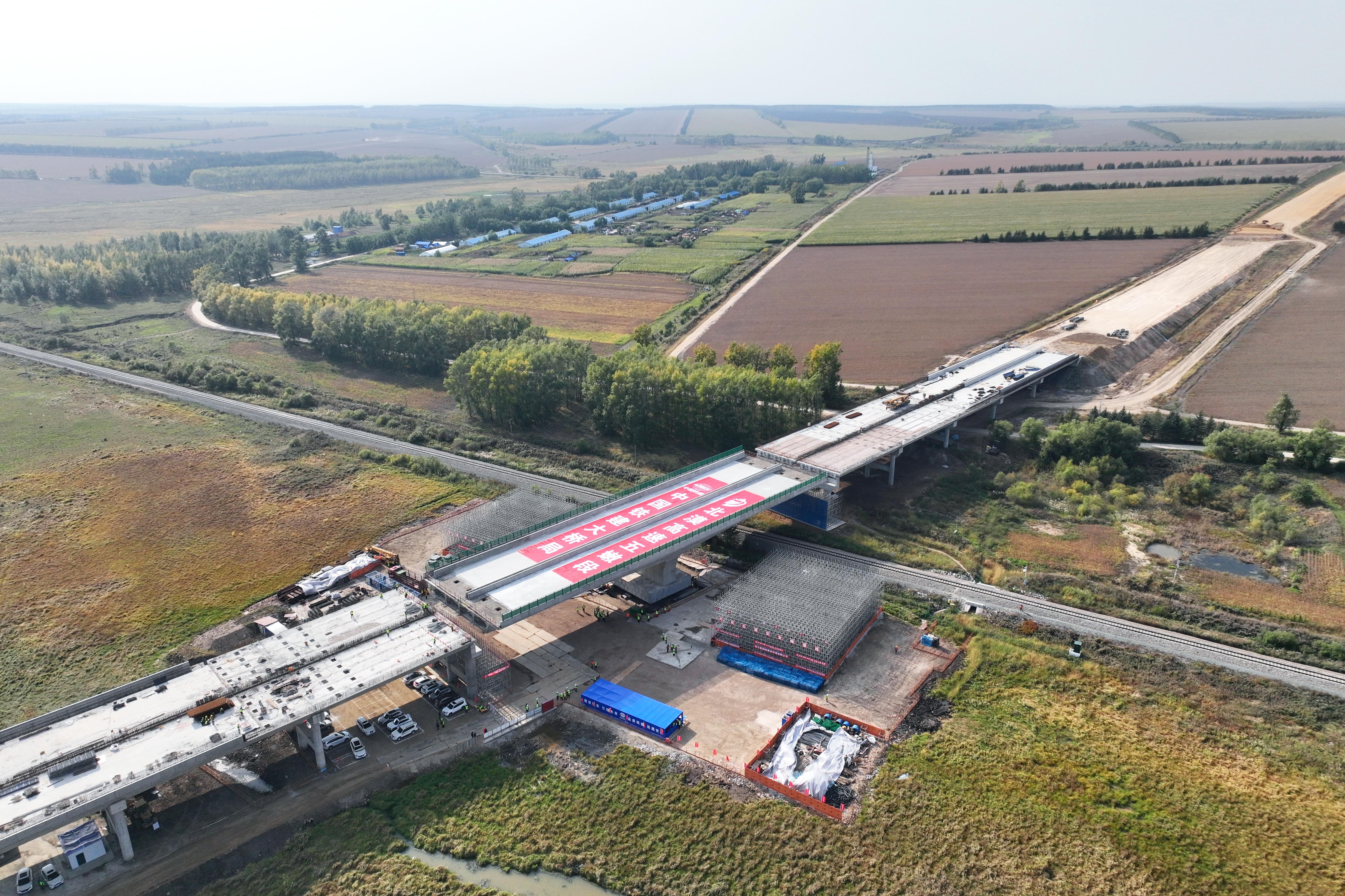 9월 23일, 중국철건대교국이 시공한 북막(北漠) 고속도로 프로젝트가 중대한 진전을 이루었다. 부눈(富嫩)철도선을 가로지르는 T형 립체 교차교가 성공적으로 회전되여 후속 도로층 시공에 견고한 기초를 마련했다.