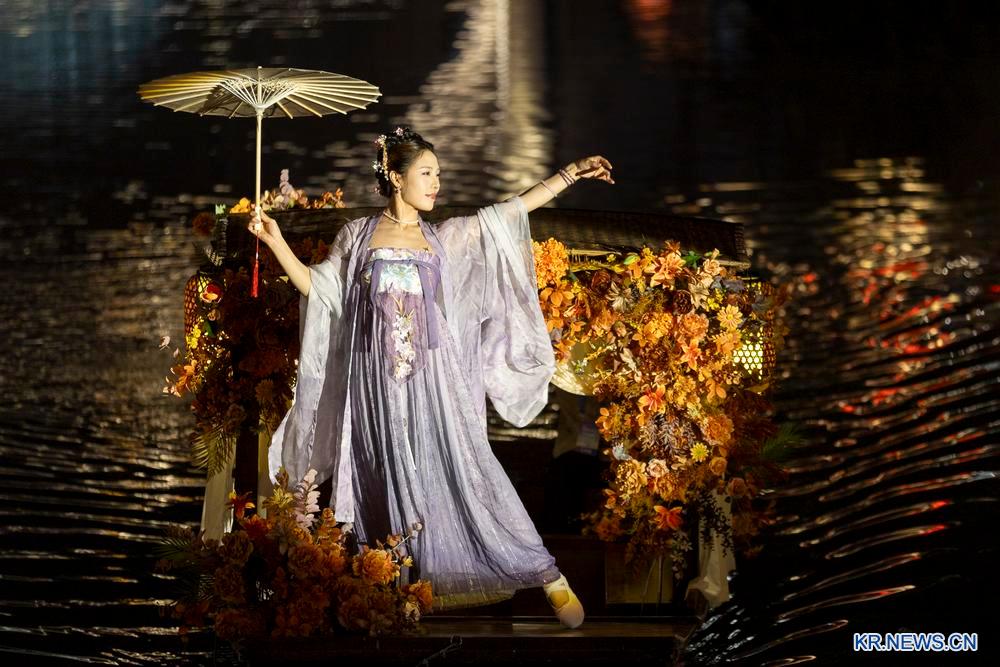22일 상해 칠보고진에서 공연을 선보이는 배우.