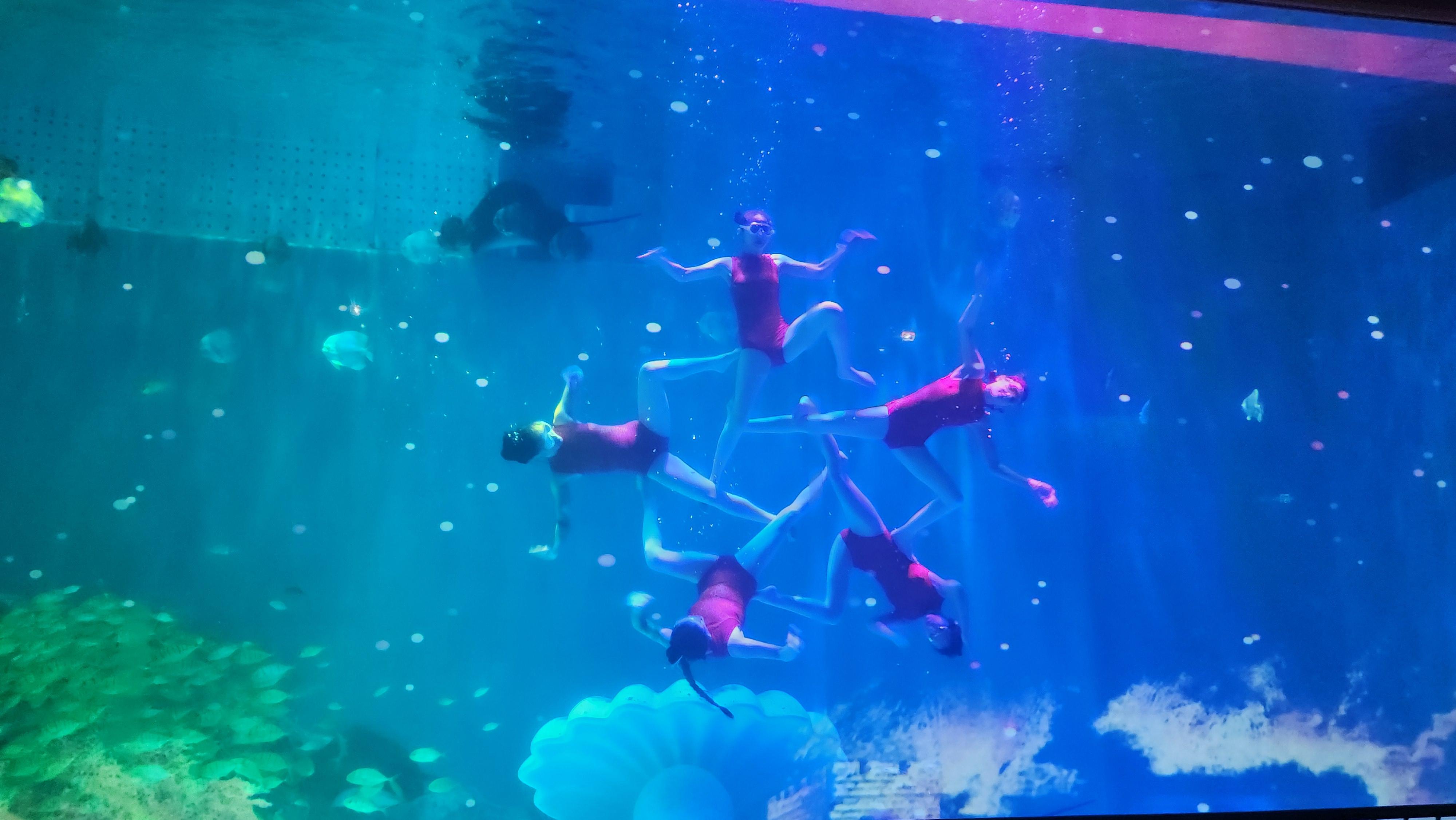 세계 최초로 선보이는 흰고래 수중공연 '바다의 심장' 국경절 특별판에서는 격렬하고 뜨거운 애국음악과 함께 붉은색 의상을 입은 사육사가 푸른 빙해 속으로 잠입해 '바다의 천사' 흰고래와 절묘하게 춤을 추며 '사랑해요 중국'이라는 문구가 적힌 붉은 화폭을 물속에서 펼친다. 이는 깊은 애국심을 모든 관객의 마음속까지 전달하게 된다.