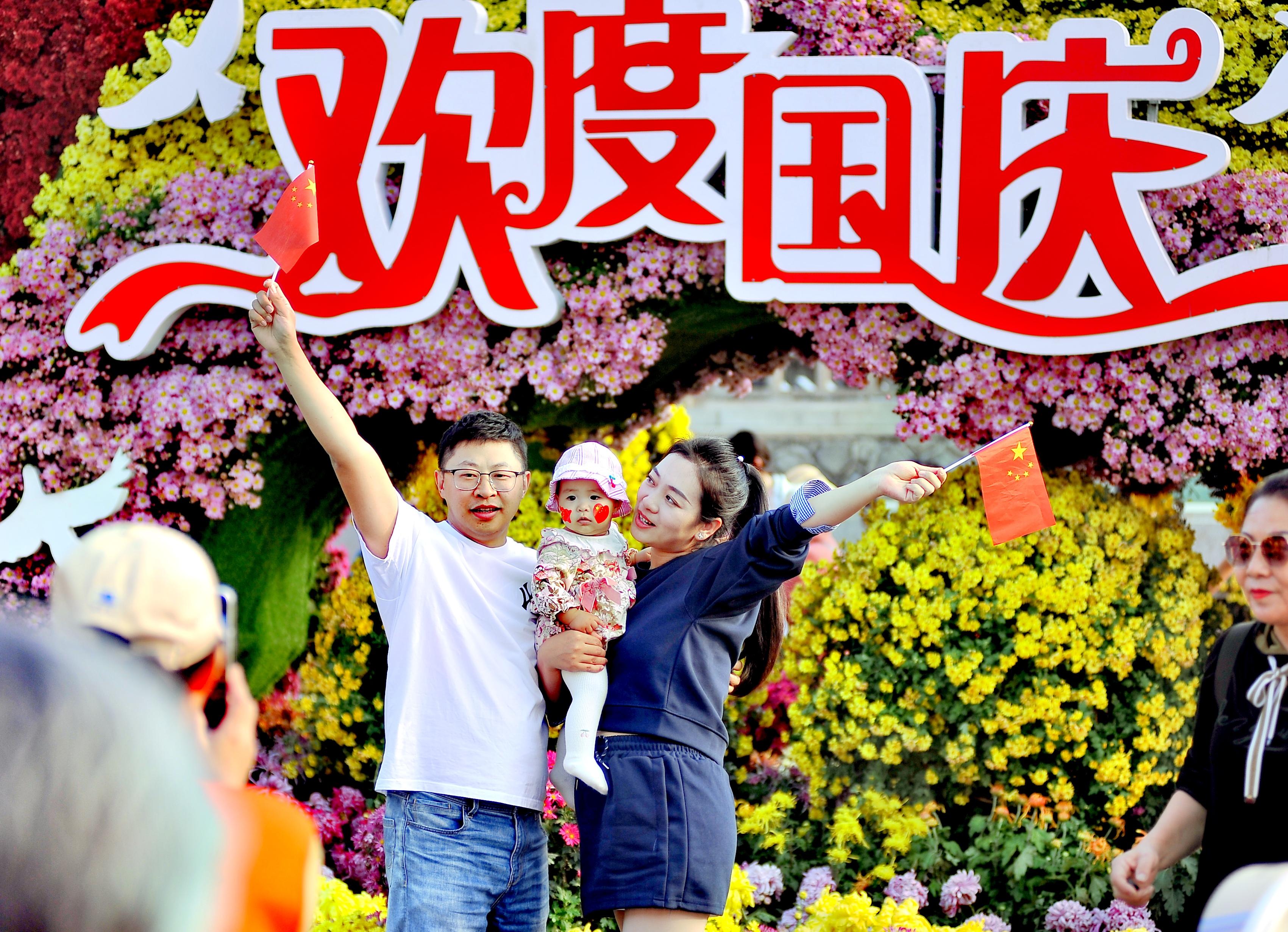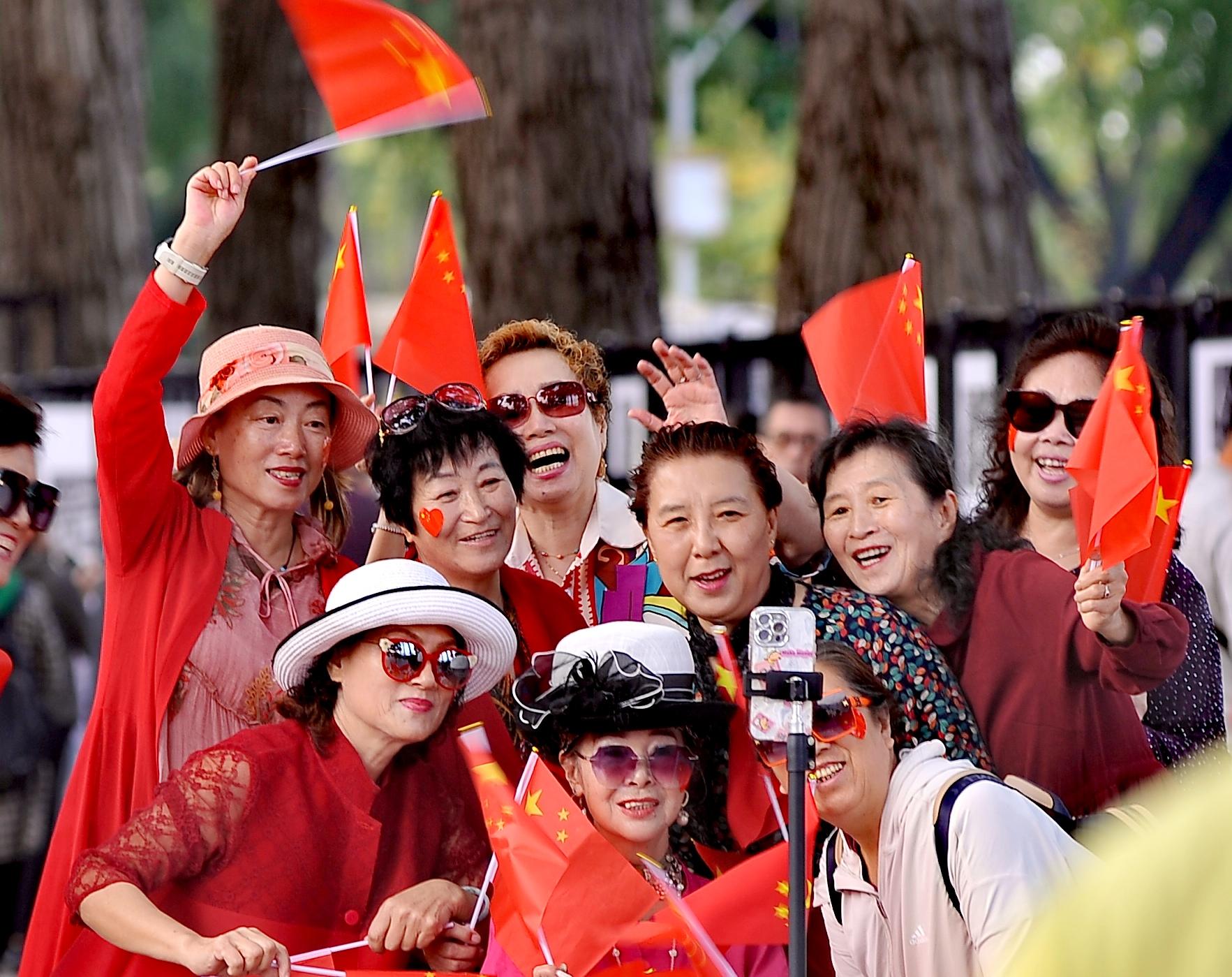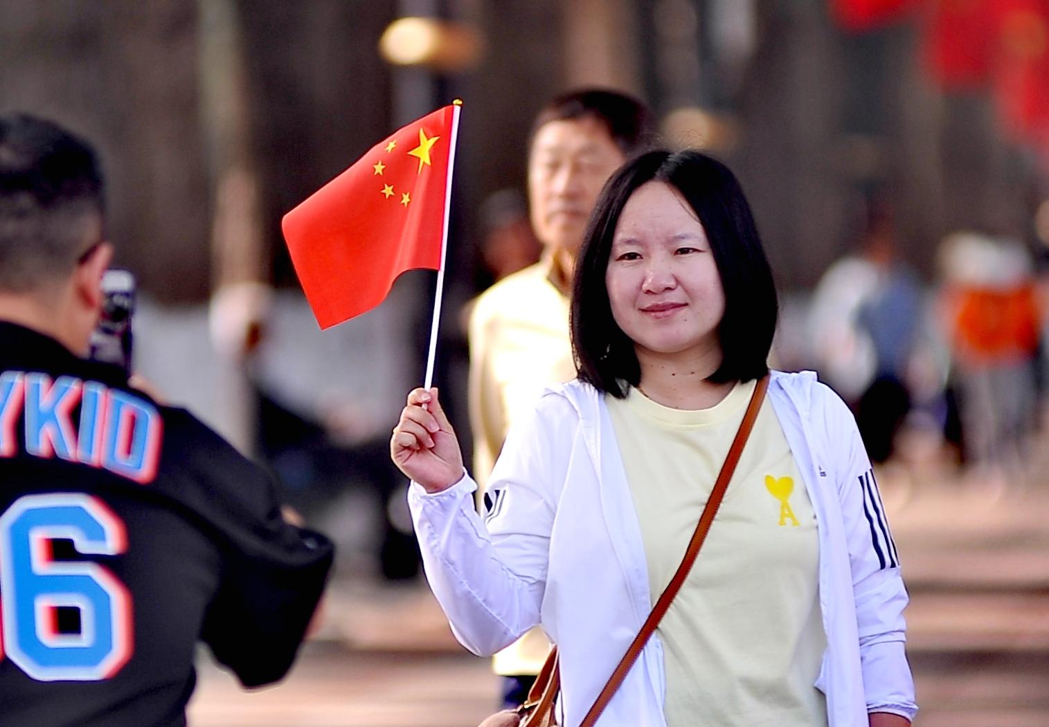 많은 관광객들이 아름다운 경치를 배경으로 국기를 들고 사진을 찍으며 조국의 번영과 창성을 기원했다.