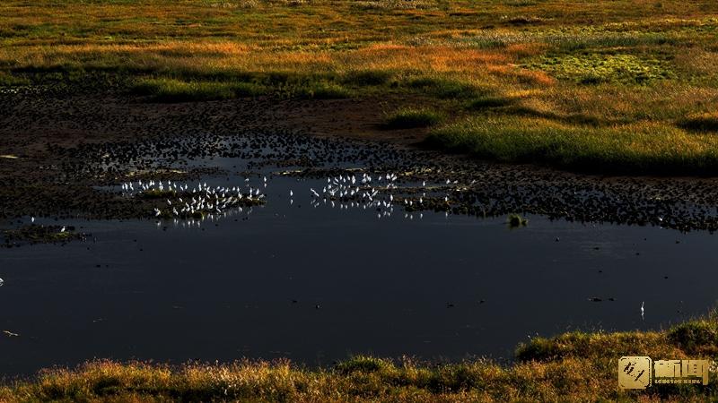 강 량안에 펼쳐진 다채로운 풍경속에서 하얗게 날아오르는 황새는 말할 것도 없이 가을을 상징하는 빛나는 존재이다. 요력하자연보호구는 철새들이 오기를 기다리고 있다.
