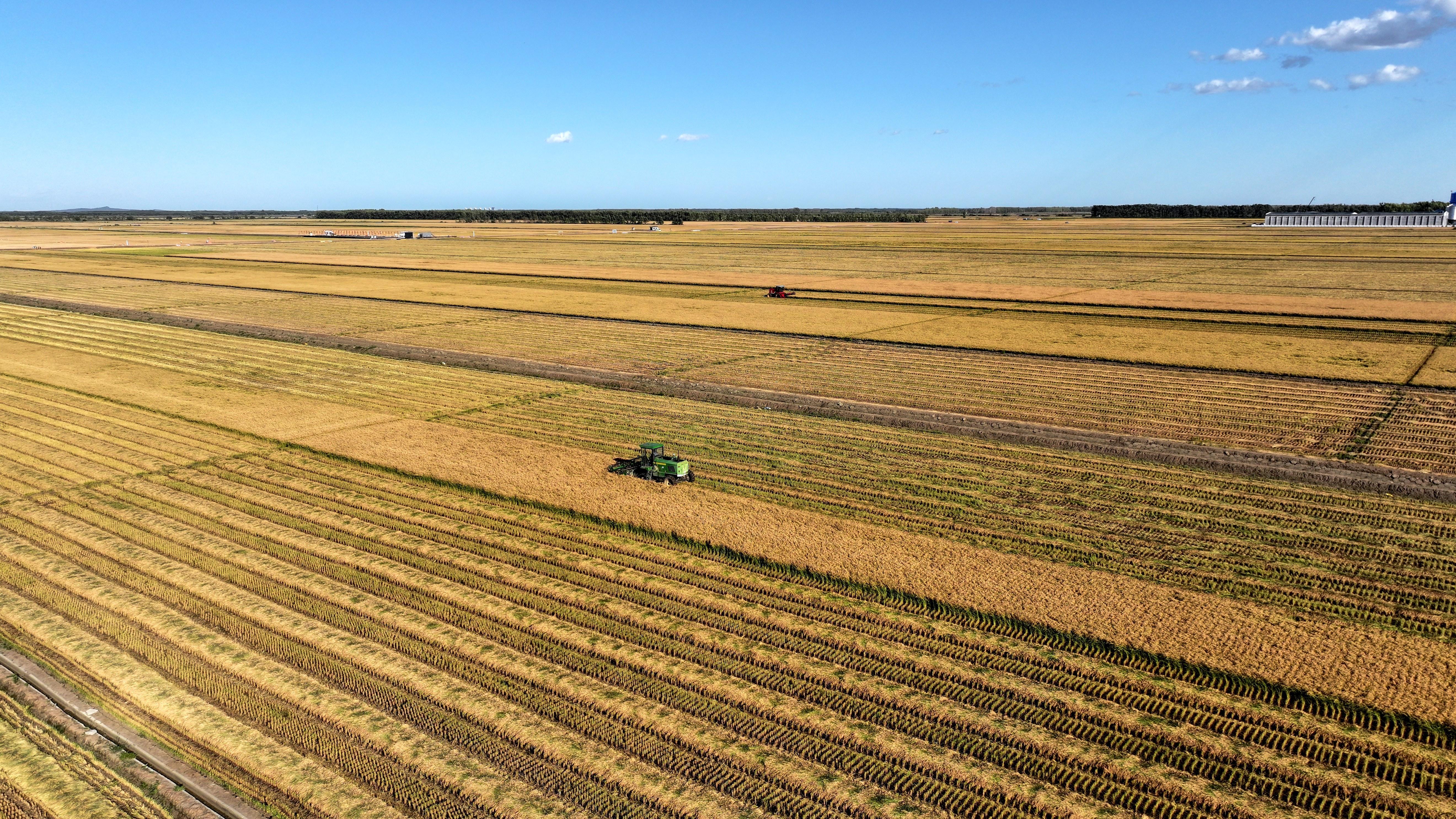 현재는 벼 수확의 중요한 시기로 각 농장은 밤낮으로 작업 속도를 높이고 있다. 올해 857 농장은 43만 4천여무의 벼를 재배하였으며 '베기+직접 수확' 방식을 결합하여 과학적으로 수확 비률을 배분하였다.