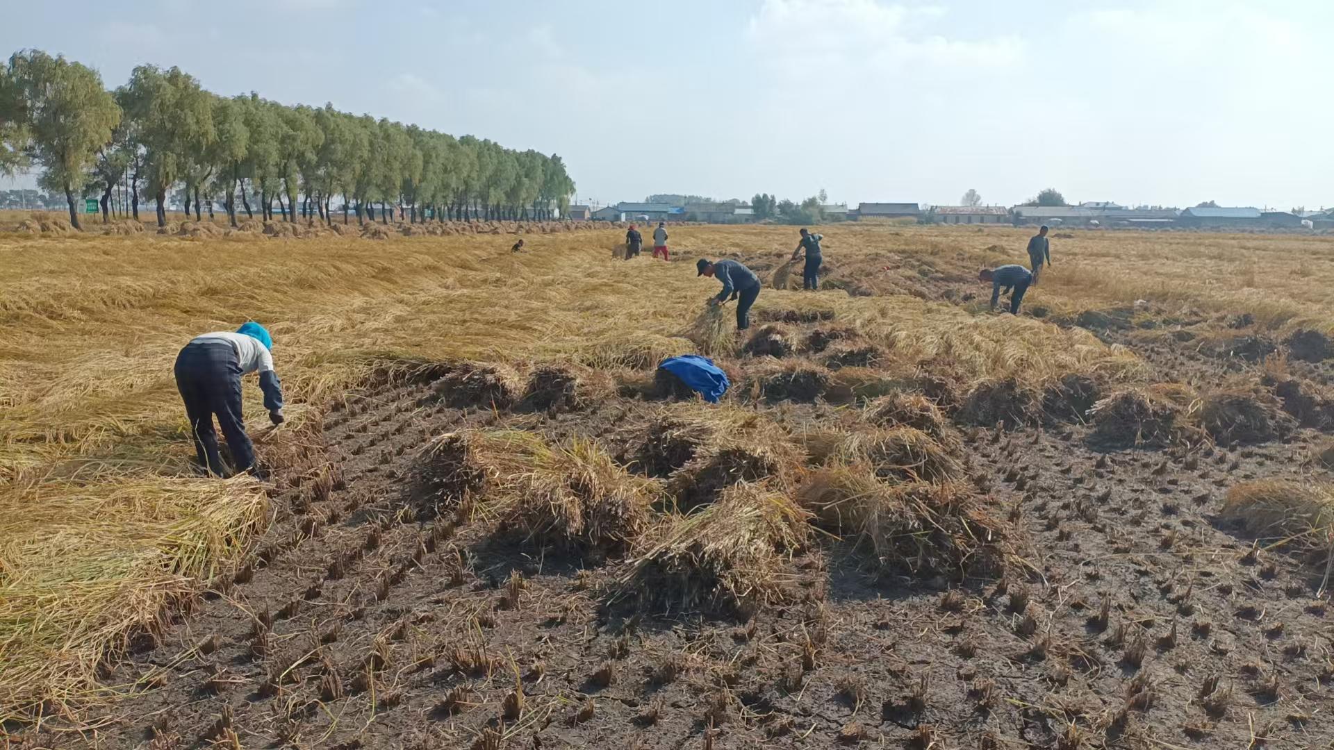 오상시 민락향 민락촌에서는 9월 20일부터 벼가을이 작업이 전면적으로 전개되였고 10월 3일에 벼가을을 마무리 하고 현재 탈곡이 한창이고 일주일 후이면 탈곡이 완료된다.