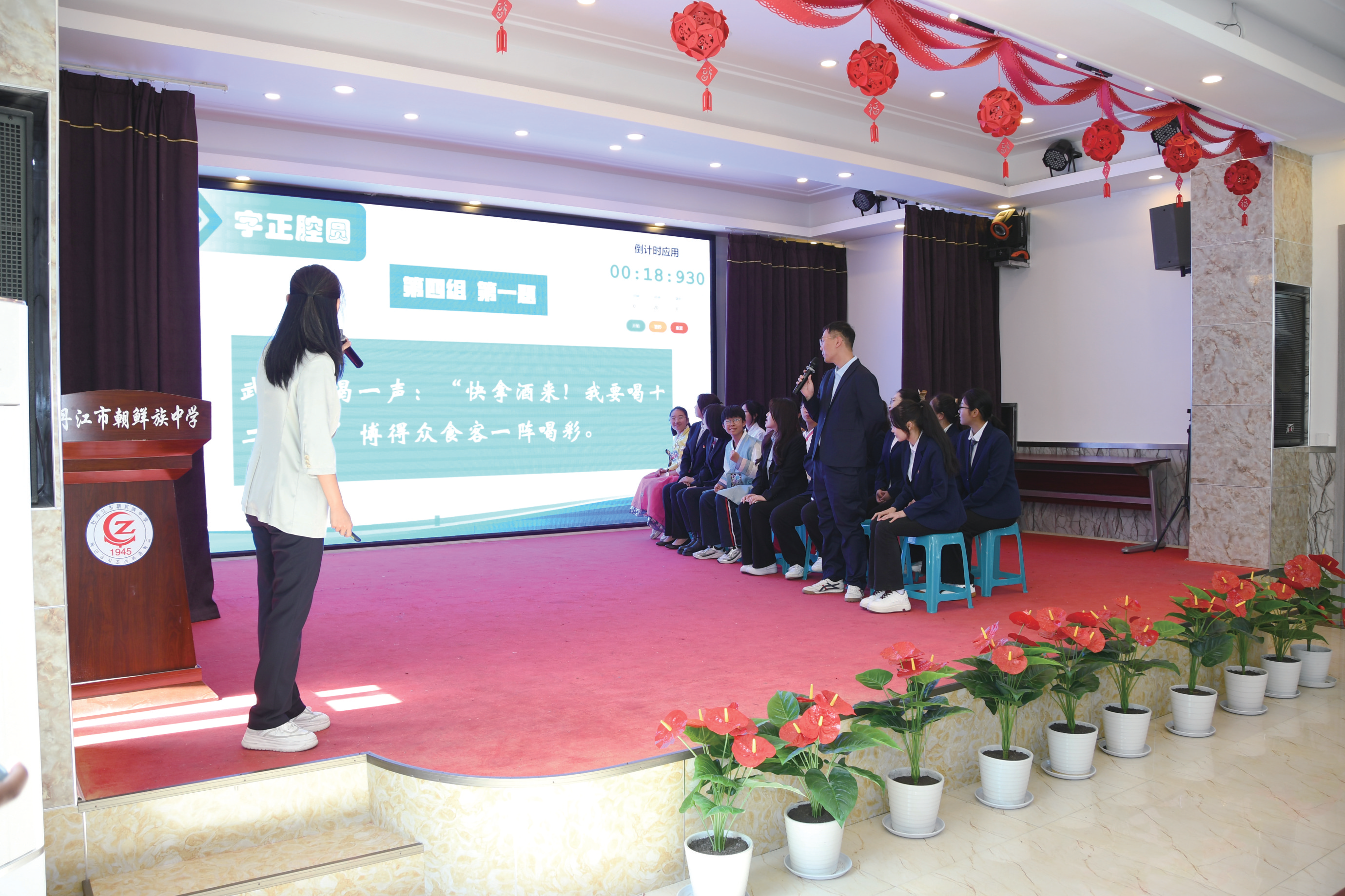 두번째 순서로 개영 교수의 표준말전문강좌를 통해 학생들은 표준말 보급의 의의와 영향에 대해 깊은 인식을 갖게 되였고 황해연 주임의 사회하에 두 학교의 사생대표들이 무대에 올라 정채로운 표준말 경연을 펼쳤다. 마지막으로 두 학교 학생들이 시랑송, 성우표현, 민족춤, 노래 등 절목으로 분위기를 고조에 이끌었다.