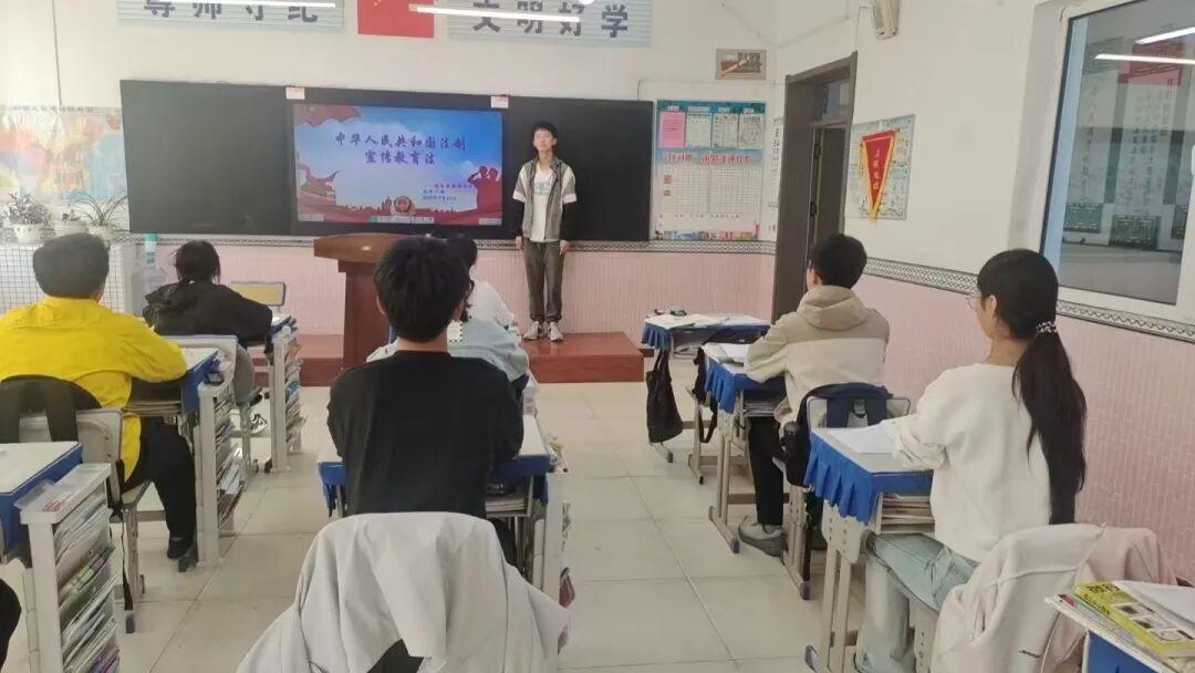 임용장 수여식이 끝난 후 새로 임용된 교외 법치부교장 전국 우수 공산당원, 전국 우수 법관 려선화 법정장께서 “법률을 준수하고 성장을 호위하자”란 주제로 사생들에게 생동한 《중화인민공화국 교육법》 특강을 진행했다. 특강에서 려선화 부교장은 교정에 존재하는 실제 상황과 전형적인 사례를 결합하여 쉽고 리해하기 쉬운 언어로 교육법의 핵심 내용을 해설하였고 학생들의 합법적 권익, 교정 안전책임, 법률무기로 자신의 권익을 수호하는 방법 등 지식점을 중점적으로 설명했다. 려선화 법치부교장은 《교육법》의 해살이 교정을 따뜻하게 비춰 법치의 씨앗이 모든 학생들의 마음속에서 싹 트고 학생들이 조화롭고 안전한 교정환경 속에서 꿈을 펼칠 수 있기를 희망하였다.