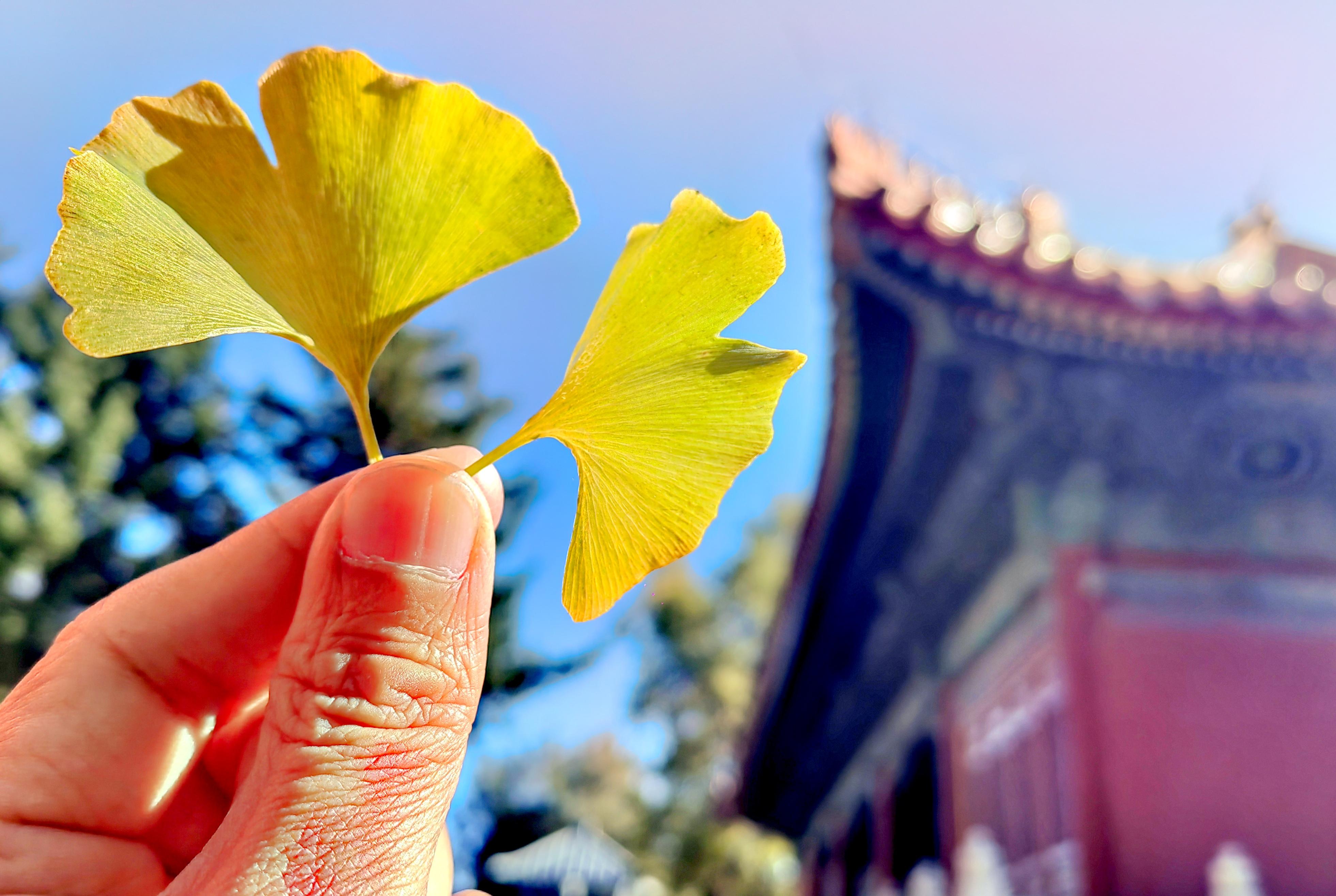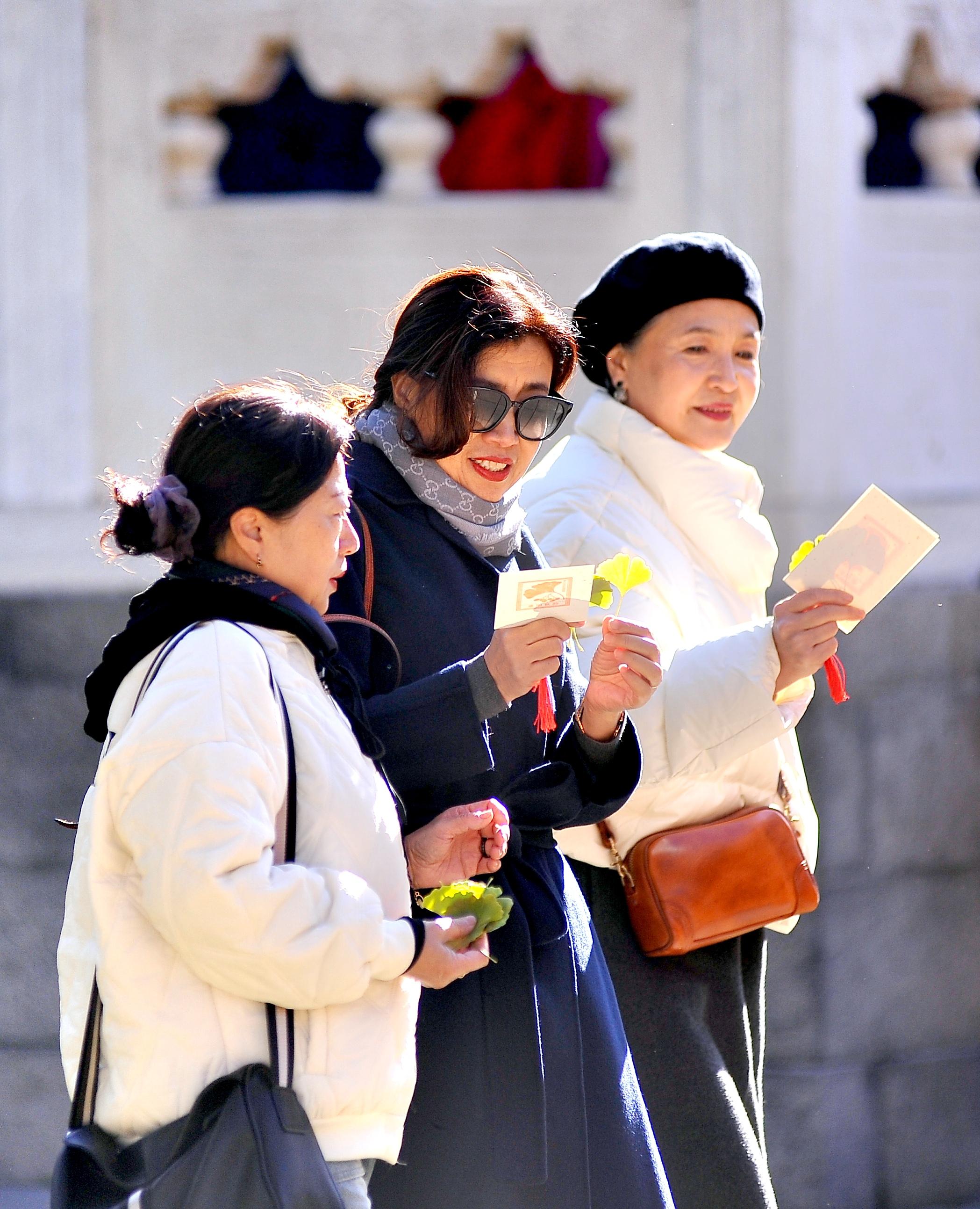 21일, 흑룡강성 민족 박물관(하얼빈 문묘) 마당에는 많은 관광객들이 모여 아름다운 은행나무 잎을 감상하고 사진을 찍고 있었다.