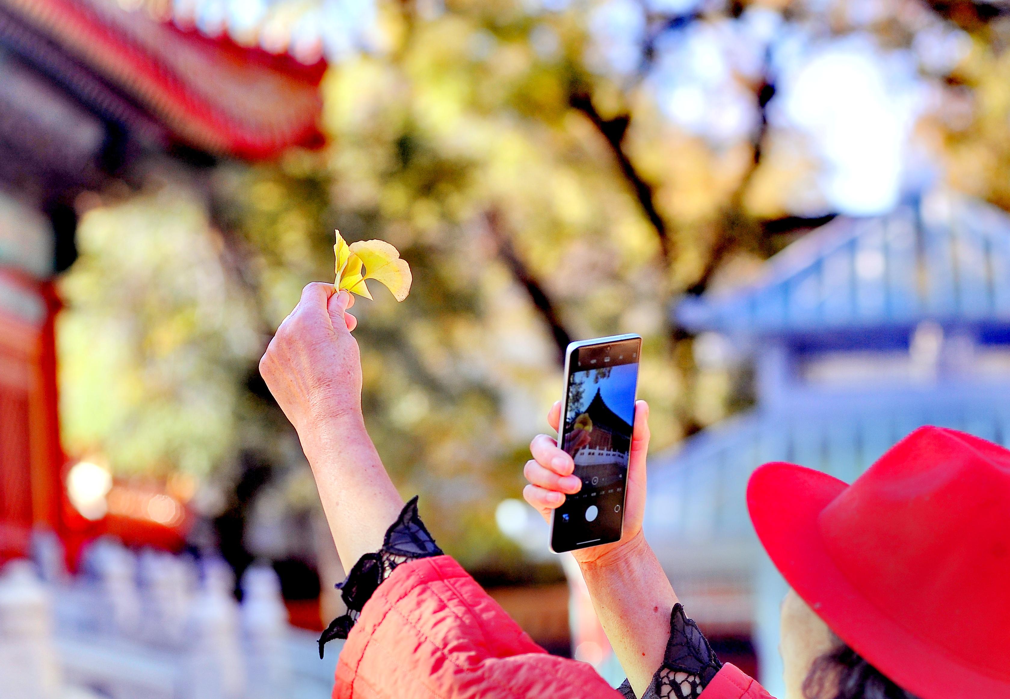 관광객들은 땅에 떨어진 은행나무 잎을 주워 사진을 찍거나 집에 가져가 책갈피나 표본으로 만들었다.