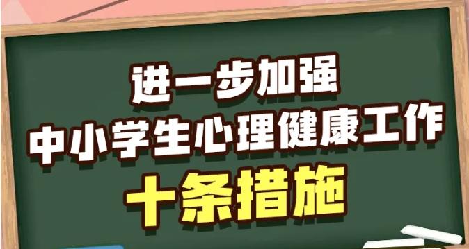 최근 교육부는 통지를 인쇄발부하여 <중소학생의 심리건강사업을 진일보 강화할 데 관한 10가지 조치>를 출범했다. 구체적인 내용은 다음과 같다.