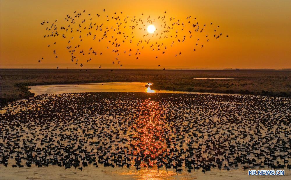 최근 흑룡강성 각지의 철새 서식지에서 많은 철새가 남쪽으로 이동하면서 장관이 연출되고 있다.