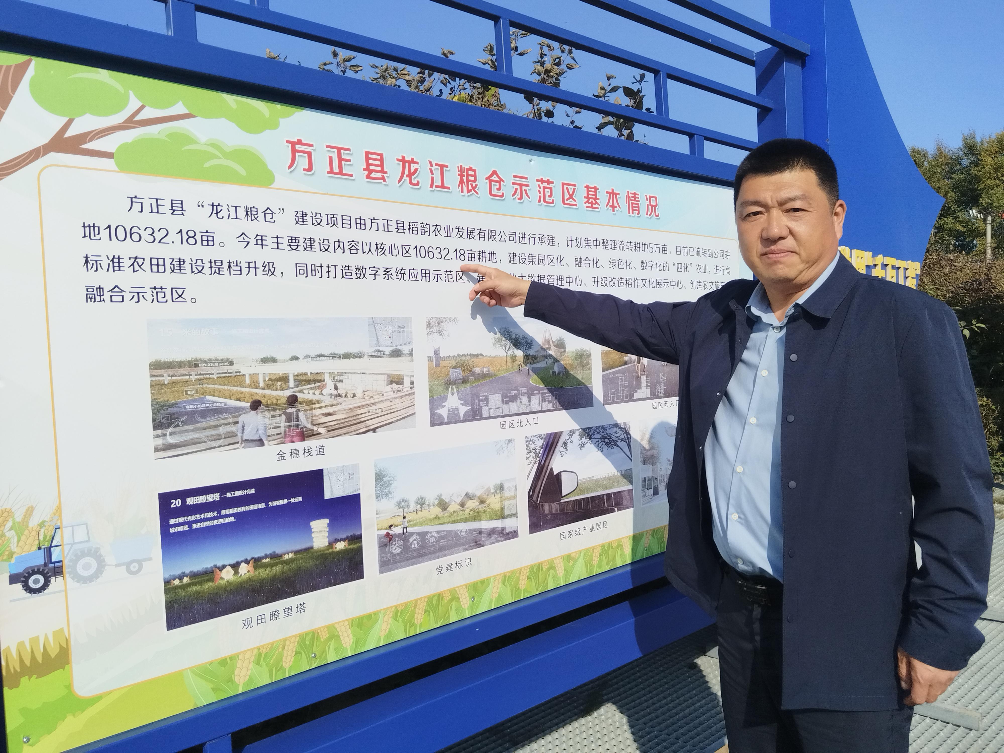 룡강곡창 시범구에 길게 늘어선 프로젝트 건설 전시판 앞에서 방정현 도운농업발전유한회사 류서 리사장은 프로젝트 건설 취지와 계획을 소개했다. 류 리사장에 따르면 '룡강곡창' 프로젝트는 방정현이 고품질 국가급 현대농업산업단지를 구축하는 핵심 시범구로 총투자 14802.69만원을 계획, '단지화, 융합화, 록색화, 디지털화'라는 '4화' 농업을 집약적으로 구축, 고표준 농경지 건설을 고도화하며 동시에 디지털 시스템 적용 시범구, 농업 빅데이터 관리센터 구축, 벼 재배 문화 전시센터 업그레이드, 농업-문화-관광 산업 융합 시범구 조성을 통해 단지화, 융합화, 록색화, 디지털화가 일체화된 국가 현대농업산업단지의 모범을 구축할 예정이다.