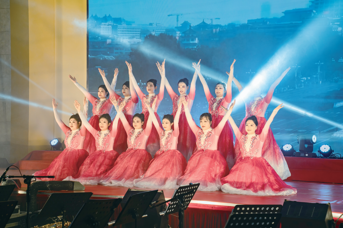 80명 관현악대와 100명 교사와 부분 학생들이 출연한 대합창 ‘중화를 사랑하네’와 ‘교가’로 막을 올린 기념공연은 시작부터 환락의 도가니에 빠져들었다. 전교 사생들이 모두 동원되여 선보인 절목은 한결같이 단합된 녕안조중의 풍모를 여실히 보여주어 관중들을 감동시켰다. 장내는 “와!” 하는 함성소리와 함께 우뢰와 같은 박수소리가 그칠 줄 몰랐으며 퇴직교원활동팀의 장고춤 ‘희열’이 고조를 이끌었다.