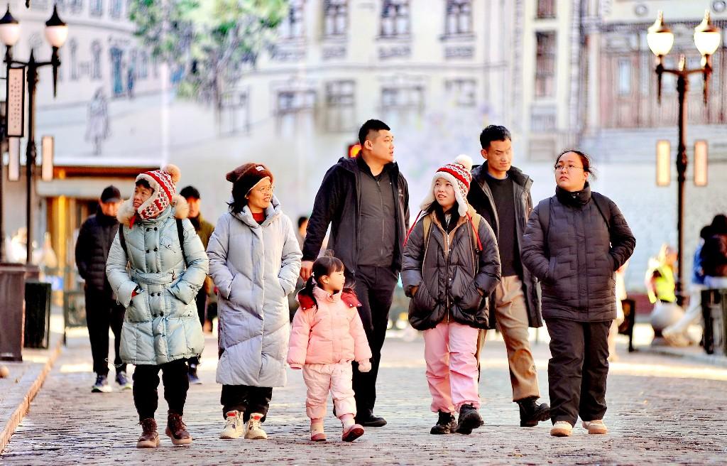 11월 3일, 할빈시 도외구 중화바로크력사문화거리에 관광객들이 끊이지 않고 찾아왔다.