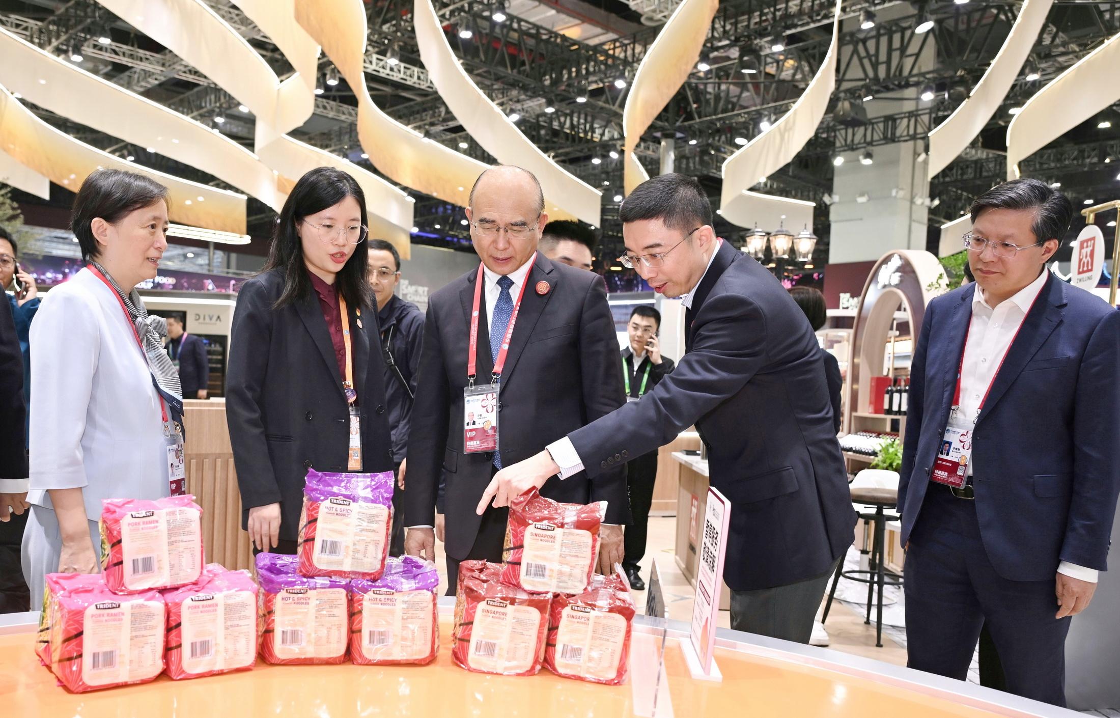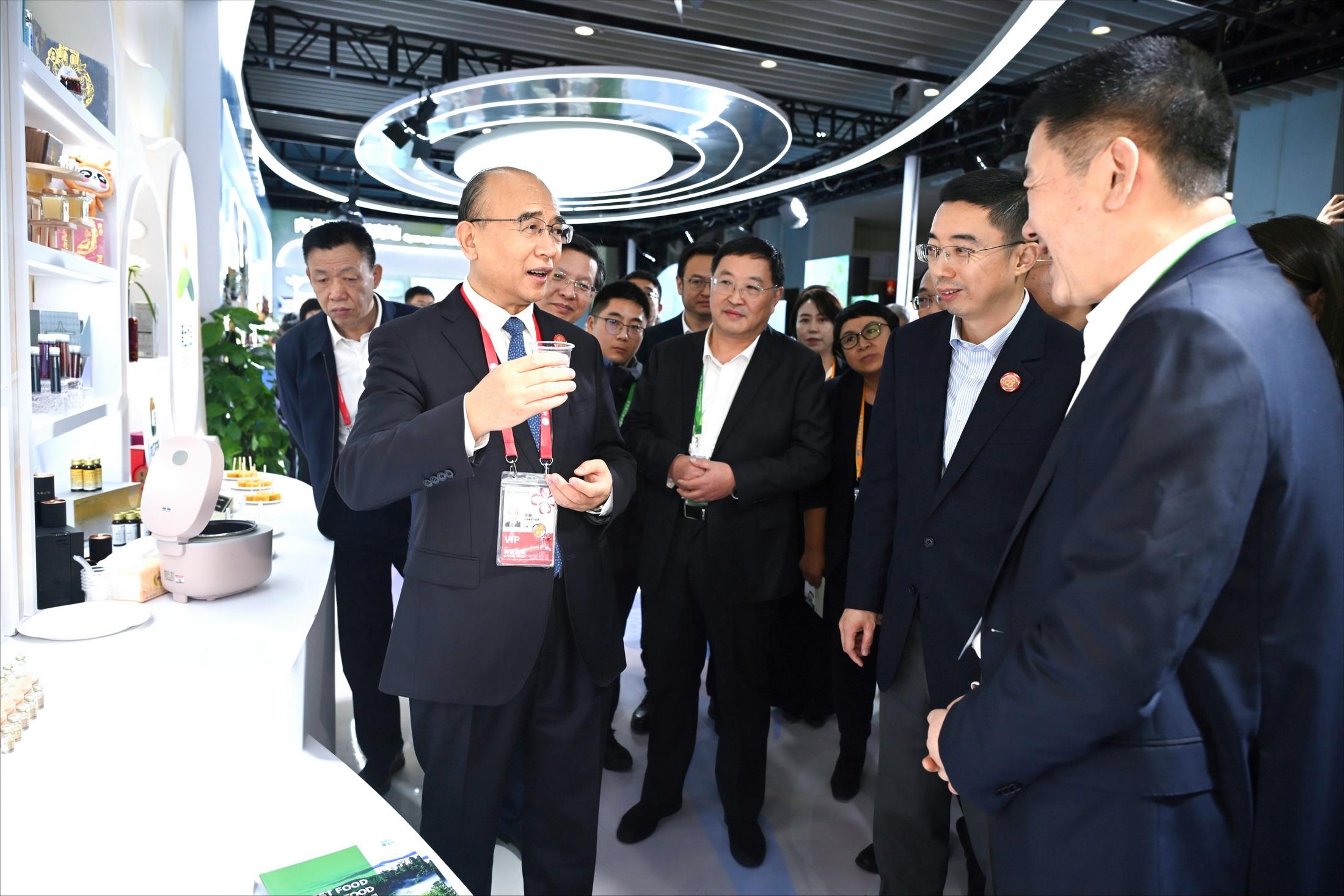 허근은 선후하여 광명유업, 태국정대그룹, 싱가폴풍익회사 등 부스를 찾아 기업대표들과 교류했다.