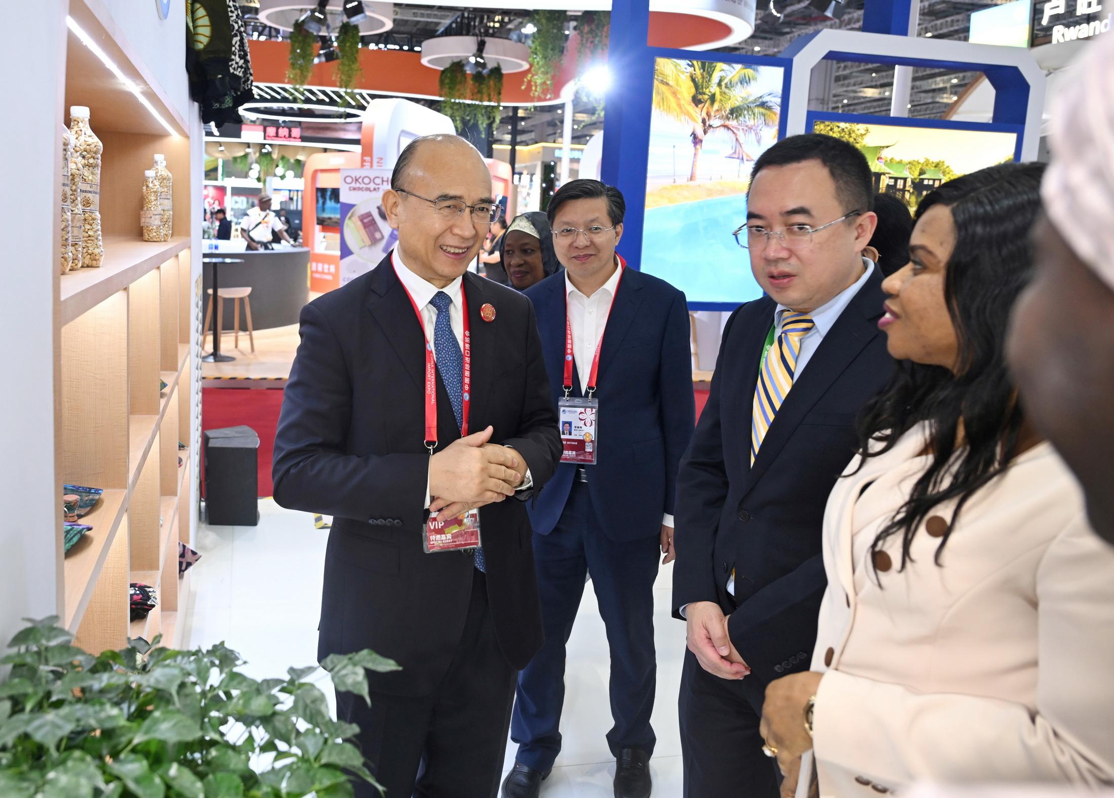 흑룡강성 인문교류 전시 구역에는 많은 사람들이 모여들었으며 '룡강지조(龙江智造)', '흑토우품(黑土优品)', 특색문창 등 흑룡강성의 우수 제품들이 많은 관객들을 끌어모았다. 허근은 제품 연구개발과 전시판매 상황을 살피며 "수입박람회 플랫폼을 잘 활용하여 전시, 투자유치 매칭, 포럼교류 등 활동을 정성껏 조직하여 전 세계에 흑룡강성의 우수한 제품을 소개하고 흑룡강성 이야기를 잘 전하여 흑룡강성의 명성과 영향력을 더욱 향상시키고 고품질 발전에 더 많이 기여해야 한다"고 강조했다.