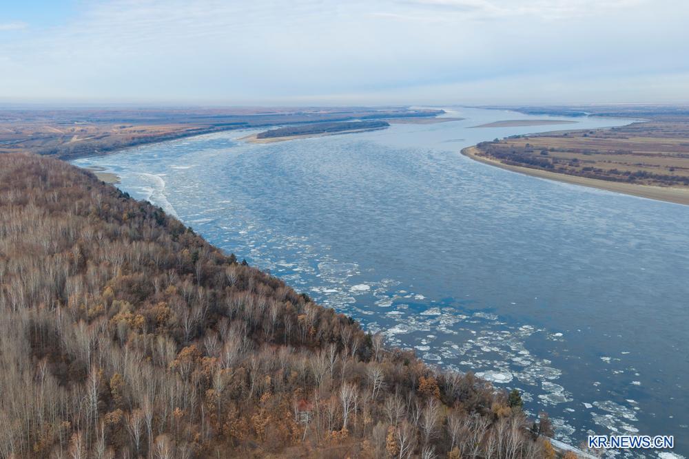 5일 류빙으로 가득한 가음구간 흑룡강을 드론에 담았다.