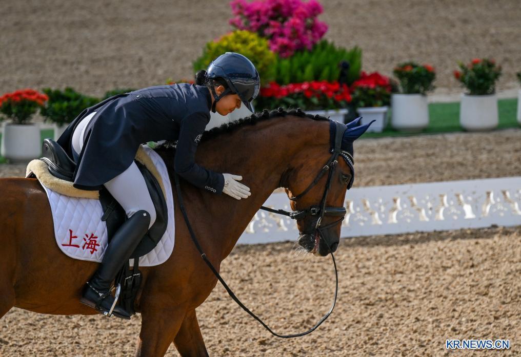 10일 상해 승마팀의 서묵비(徐墨菲)가 마장마술 경기에서 연기를 펼치고 있다.
