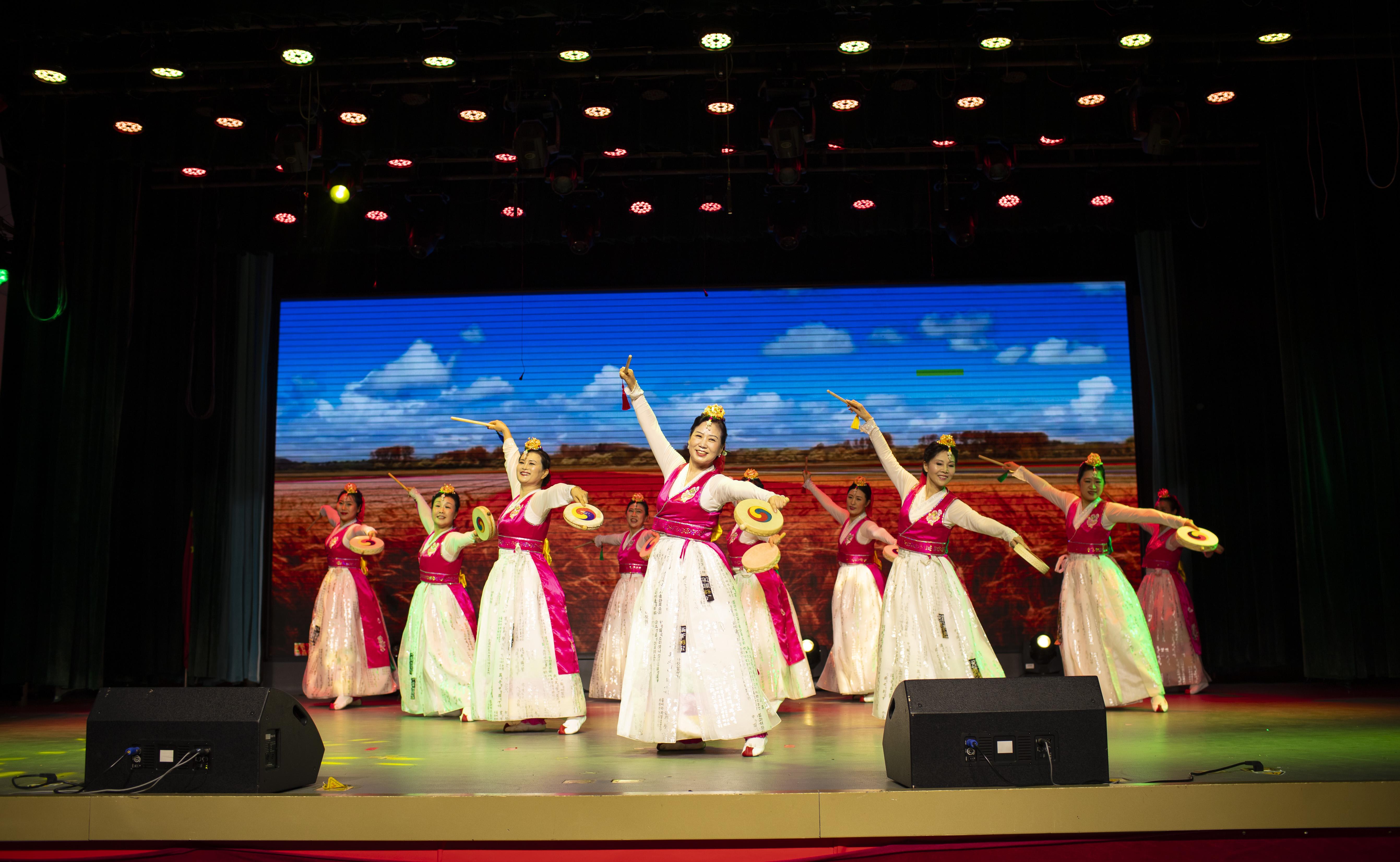 강렬한 리듬과 신나는 춤사위가 특징인 심양시조선족녀성협회회원들의 무용 <성세고혼>이 공연의 서막을 열었다.
