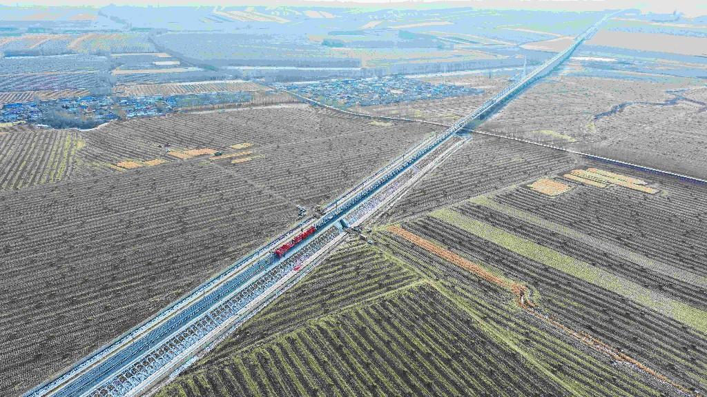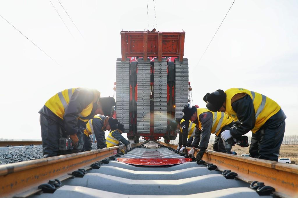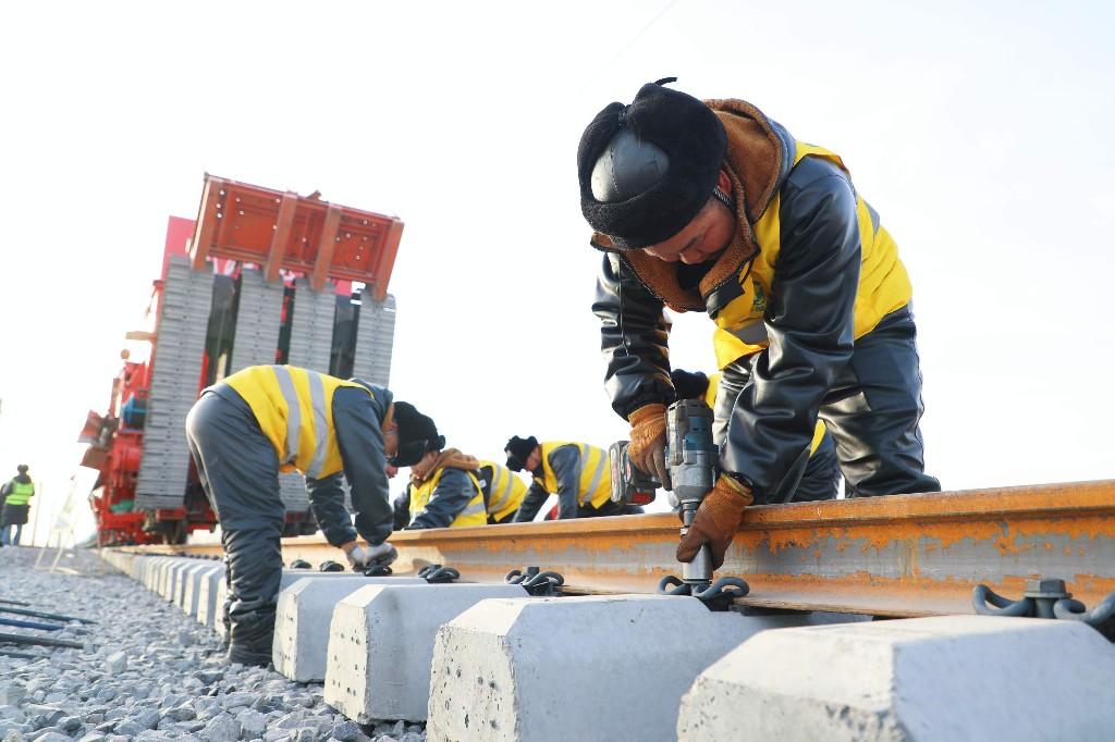 25일 흑룡강성 수화시 경안현 할빈-이춘 고속철도 할빈-철력 구간 궤도 부설 현장. 중국철로 2국 그룹 소속 작업자 4명이 전동 렌치를 들고 마지막 레일 볼트를 조이며 우리나라 '14·5'규획 중점 프로젝트인 할빈-이춘 고속철도의 전구간 궤도 부설이 완료되였음을 알렸다. 이는 향후 련동시험을 위한 기초를 마련했다.