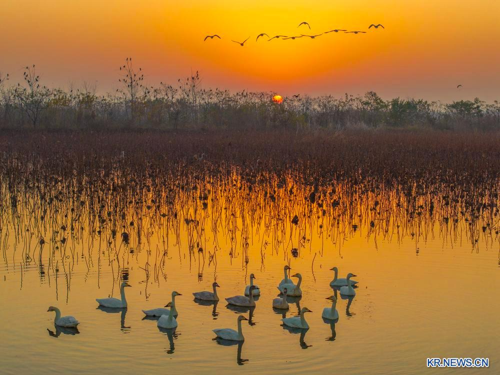 강소성 흥화 리하하(里下河) 국가습지공원에서 서식하고 있는 새들을 지난달 30일 드론으로 담았다.