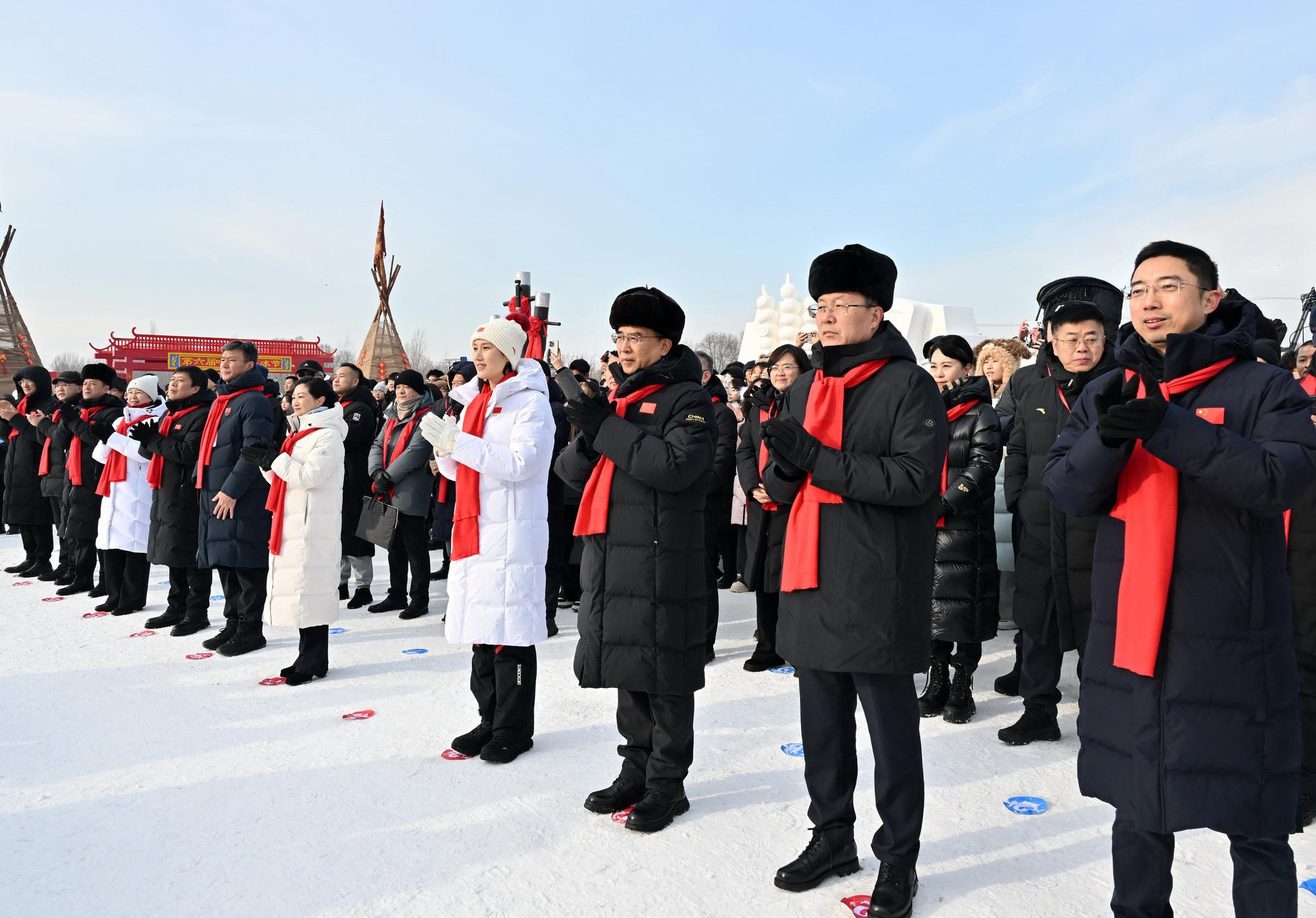 이어 부성장 한성건과 국제올림픽위원회 위원, 세계 컬링 련합회 리사, 스피드스케이팅 동계 올림픽 챔피언인 장홍이 함께 첫얼음을 맞이, 행운의 끈을 달아맸다. 관광객들의 아름다운 축복과 빙설시즌의 즐거움과 평화를 담은 첫 얼음이 할빈빙설대세계 대표에게 전달됐다. 첫 얼음은 빙설대세계에 전시되여 사방에서 온 관광객들에게 가장 따뜻한 빙설 초대장을 전할 예정이다.