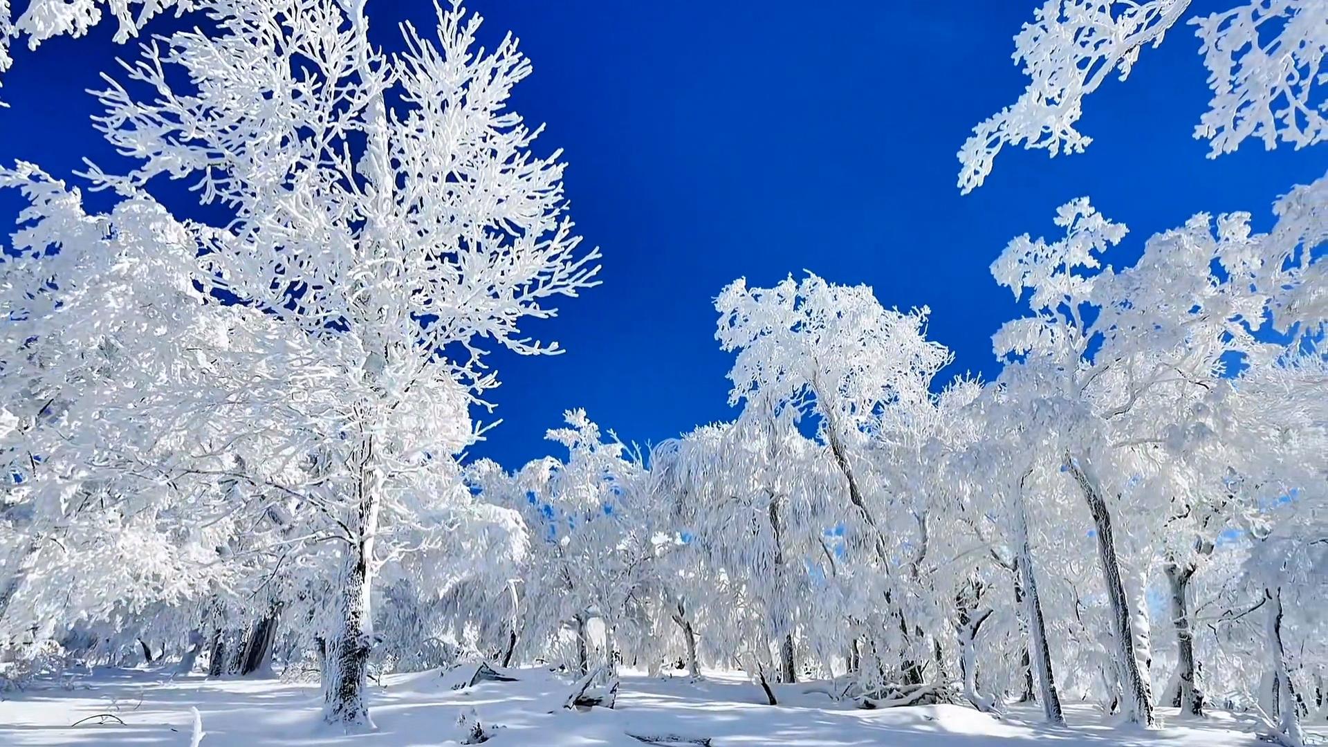 새벽이 밝아오며 첫 해살이 얇은 안개를 뚫고 나오자 강가의 나무들이 마치 '수정드레스'를 입은 듯했다. 버들가지에는 은실같은 서리가 매달리고 소나무와 측백나무에는 '얼음국화'가 피어난 듯 모든 가지마다 맑고 투명한 얼음 결정이 맺혀 해빛 아래 다이아몬드처럼 반짝이는 광채를 흘렸다.