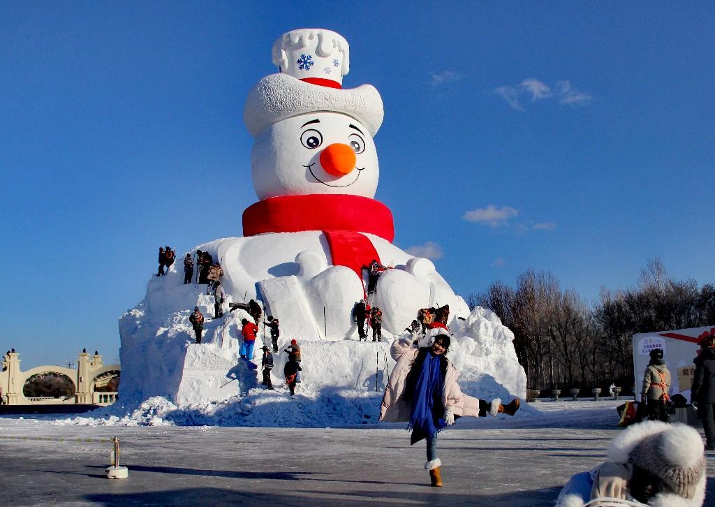 광장에는 20여미터 높이의 '눈아저씨' 눈조각이 거의 완성 단계에 이르렀고 장인들은 여전히 정교하게 다듬고 있었다.