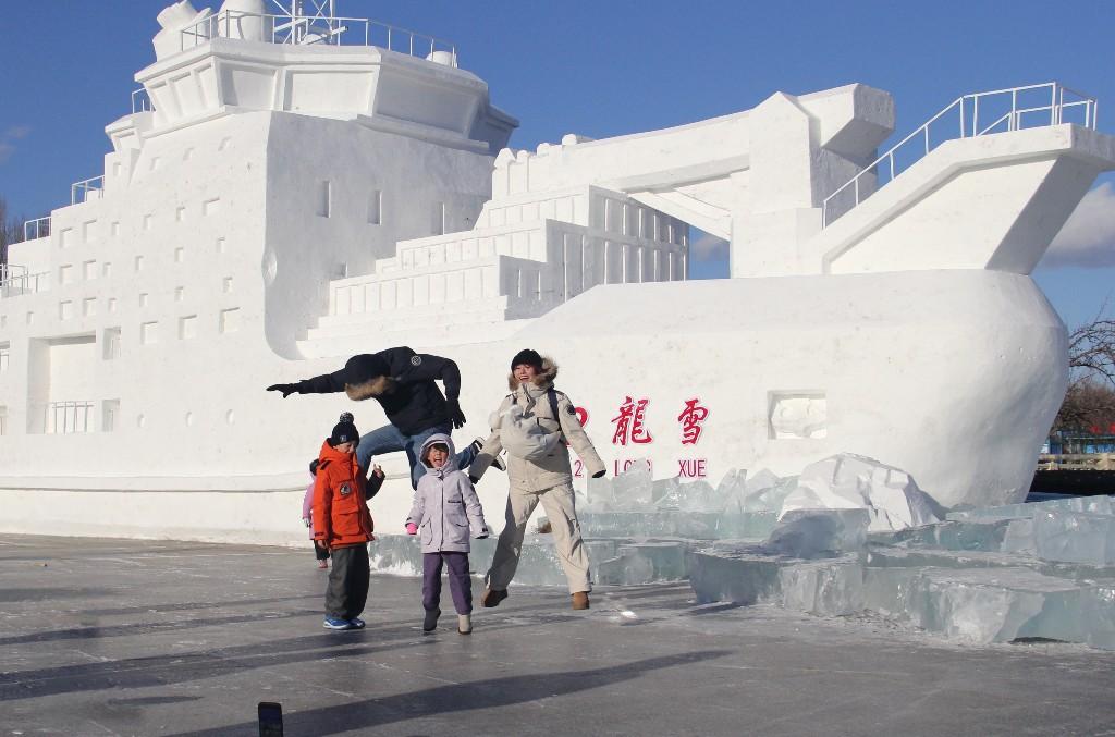 이미 완성된 '설룡 2호' 눈조각은 많은 사람들의 시선을 사로잡았다. 일부 아이들은 눈배 앞쪽의 얼음 우에 올라가 놀거나 사진을 찌고 있고 있는 가운데 즐거운 웃음소리가 끊이지 않았다.