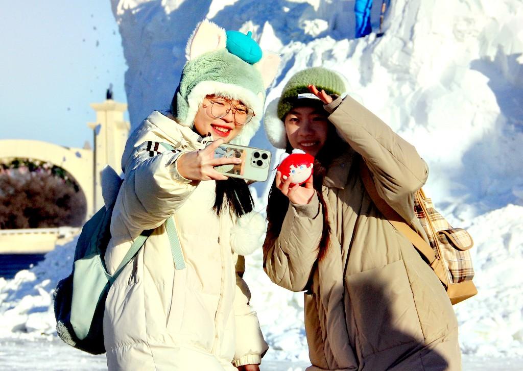 그들은 눈조각을 배경으로 휴대전화를 꺼내 하나하나의 멋진 순간을 기록했다.