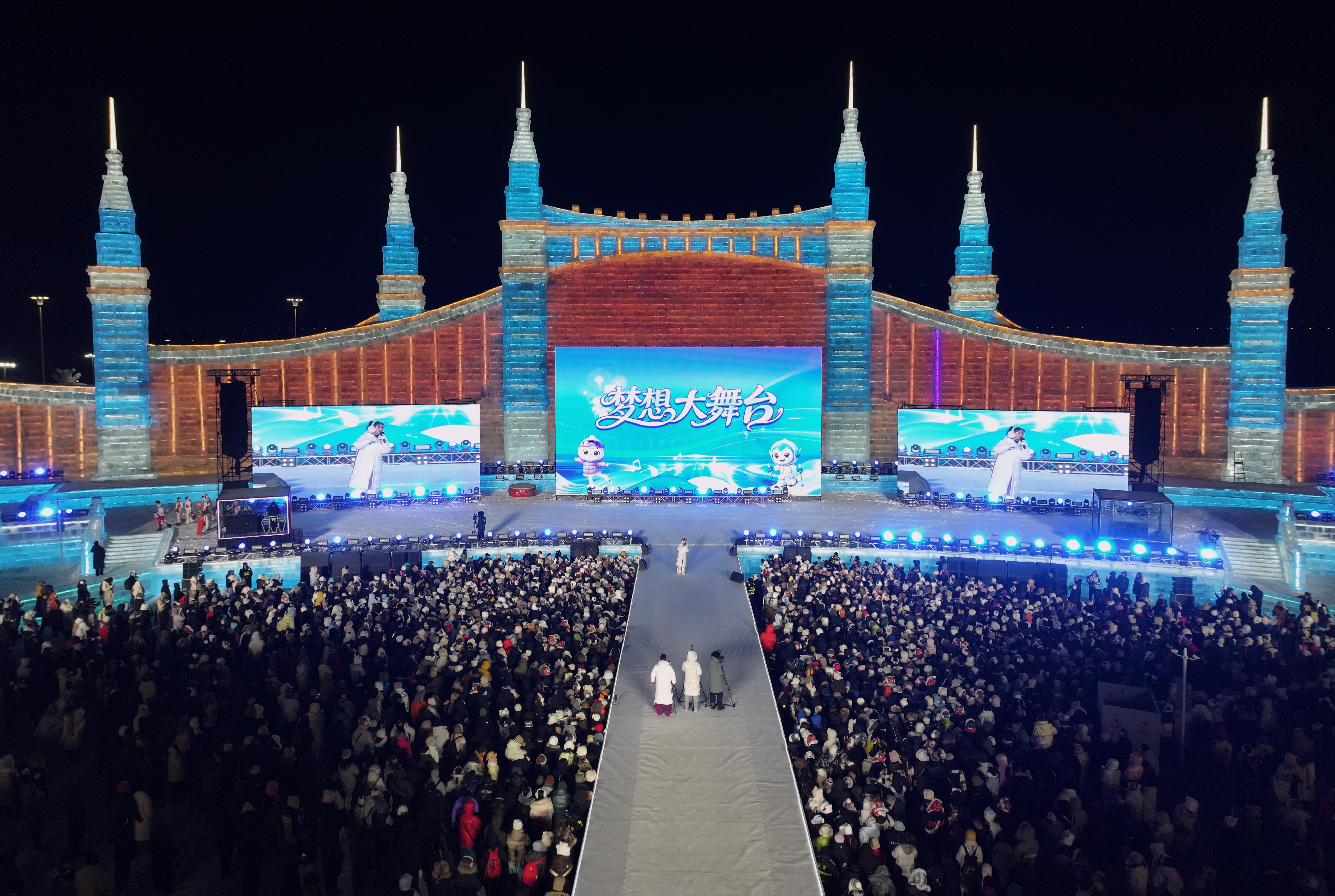 18시 30분, 드림 메인 무대공연이 시작되였다. 유머러스하고 쾌활한 진행자인 얼음도시 '좌우형(左右哥)'이 화려하게 등장, 현장에 모인 수만명의 관광객들과 열정적으로 소통했다. 무대는 순식간에 뜨거운 환호의 바다로 변했다. 올해 할빈빙설대세계 드림 메인 무대 공연은 전면적으로 업그레이드되여 '할빈빙설대세계' 맞춤형 제스처 댄스를 만들었고 '좌우형'이 함께 배우고 즐겁게 이끌었다. 관광객들을 무대에 초대하여 모두 함께 노래하고 디스코를 즐기고 춤을 겨루고 동북사투리 대결을 펼치며 추첨을 통해 선물을 받았다. 관광객들은 또한 자체적으로 팀을 구성, 슈퍼 대형 마이크를 통해 최대의 음량을 내여 외치며 얼음 도시의 겨울 밤을 뜨겁게 달구었다.
