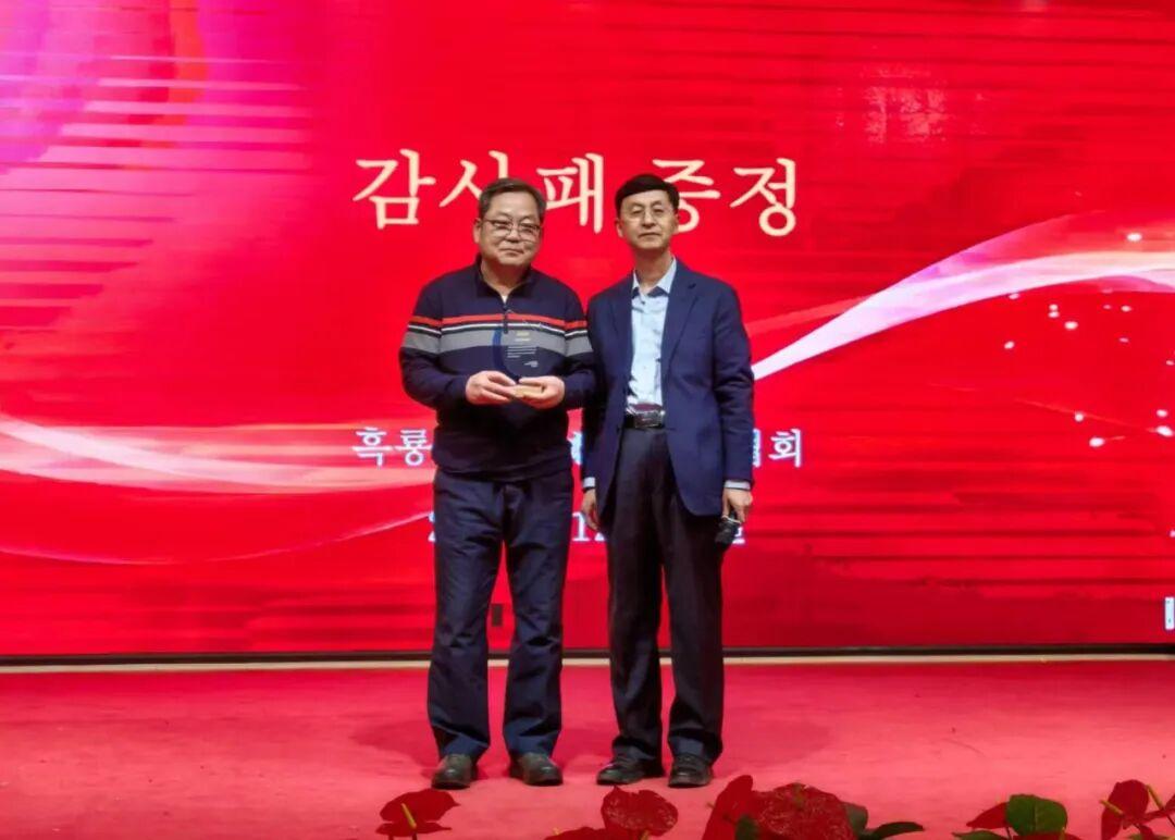 한편 리홍규 회장이 할빈건특생명과학기술유한회사 오철웅 사장과 목단강분회, 해림분회, 녕안분회 관계자에게 감사패를 증정했다.