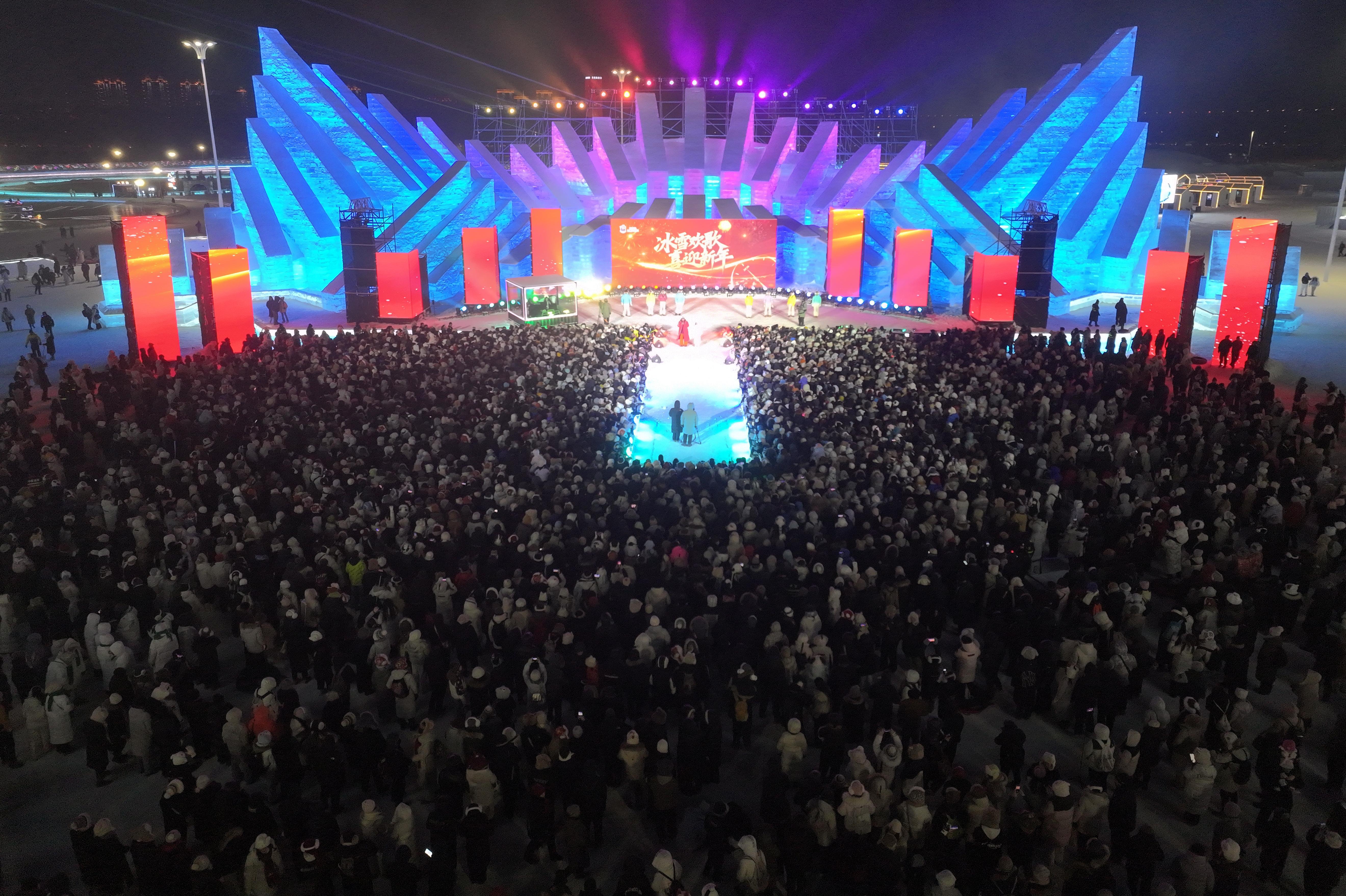 양력설 기간, 할빈빙설대세계에서 많은 관광객들이 공연을 관람했다.
