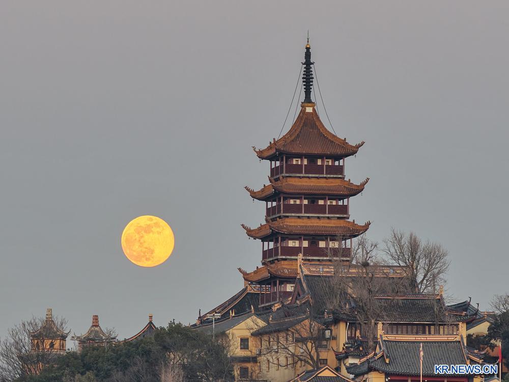 이날 강소성 남통시에서 드론으로 포착한 슈퍼문.