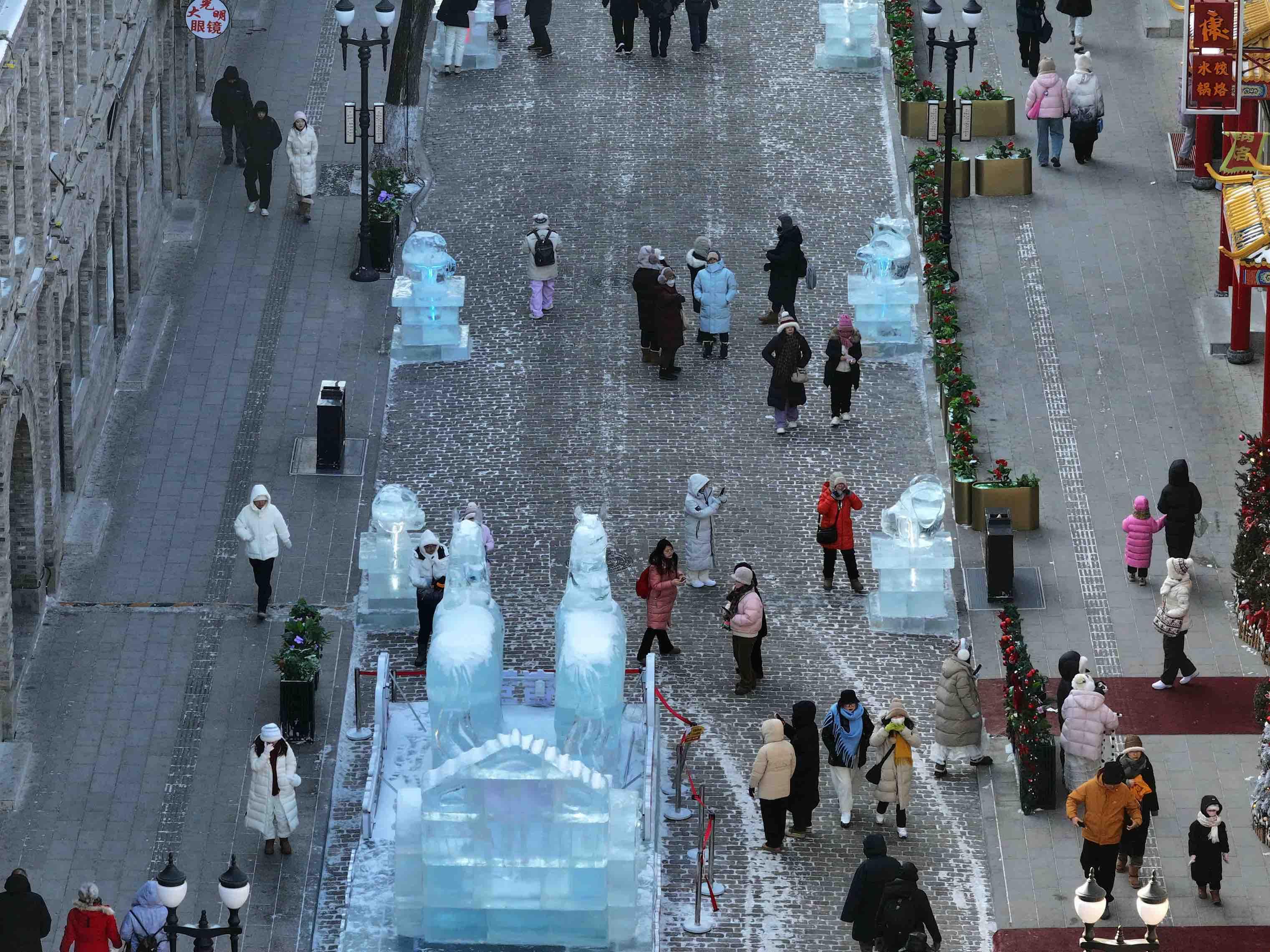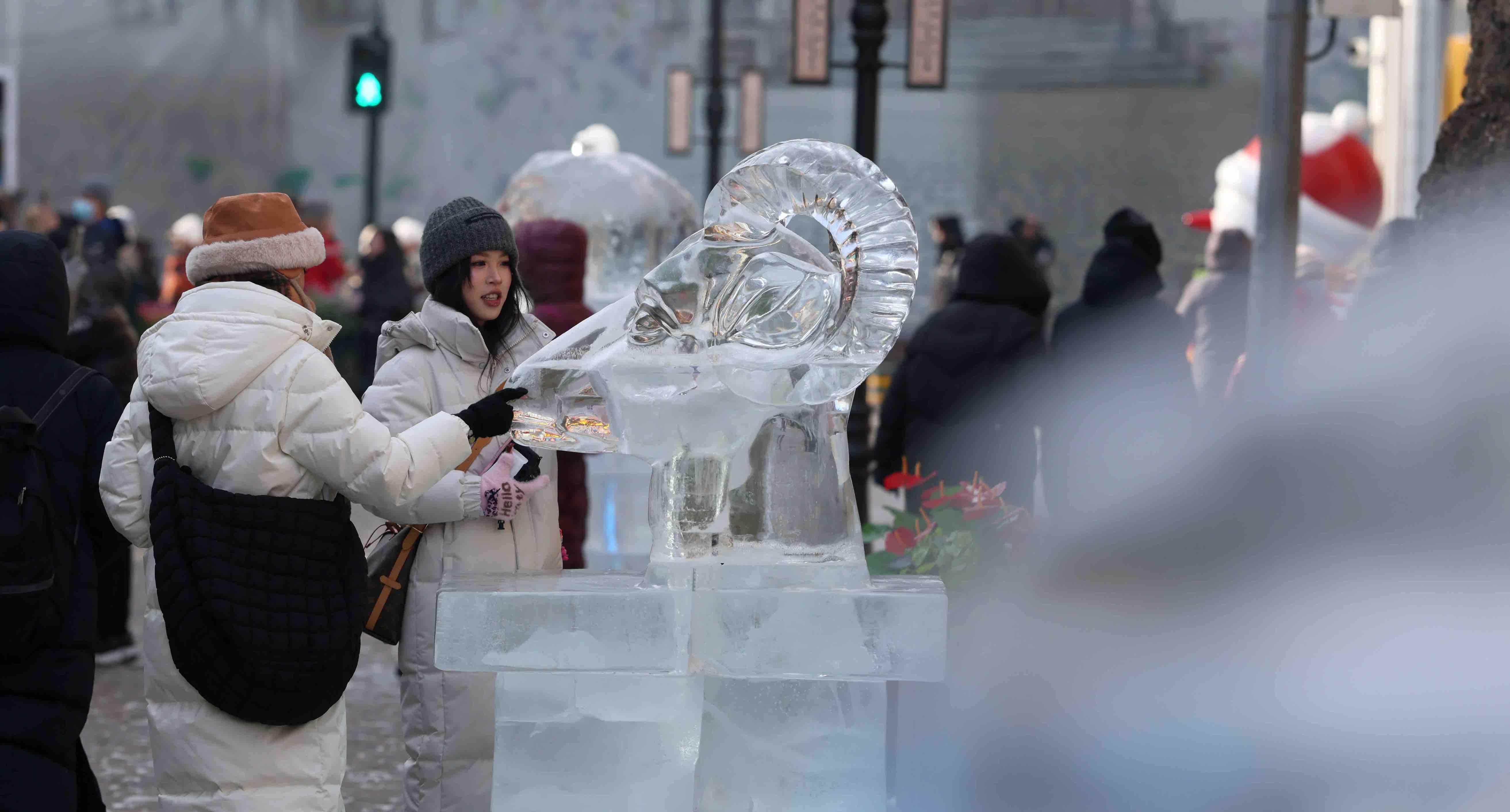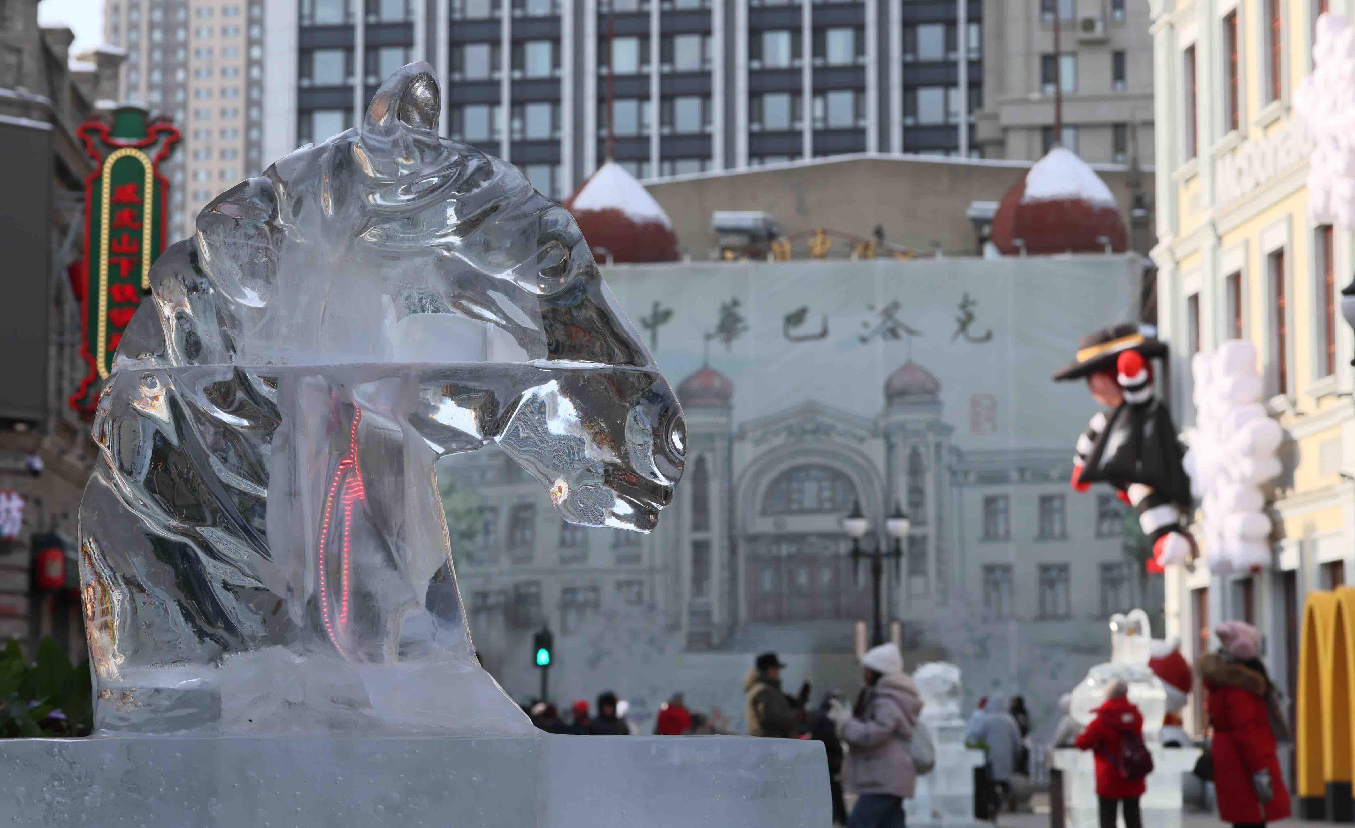 1월 11일, 할빈시 도외구 중화바로크력사문화지구에 특별한 경관이 펼쳐졌다. 12띠 동물 주제 얼음조각 작품이 백년력사의 정우가에 모습을 드러내여 수많은 관광객들이 발걸음을 멈추고 감상했다. 관광객들은 각자 자신의 띠를 상징하는 얼음조각 앞에서 사진을 찍으며 추운 겨울 옛거리에 생기를 더했다. 이 살아 움직이는 듯한 얼음조각 작품들은 할빈 겨울관광의 새로운 볼거리가 되였다.