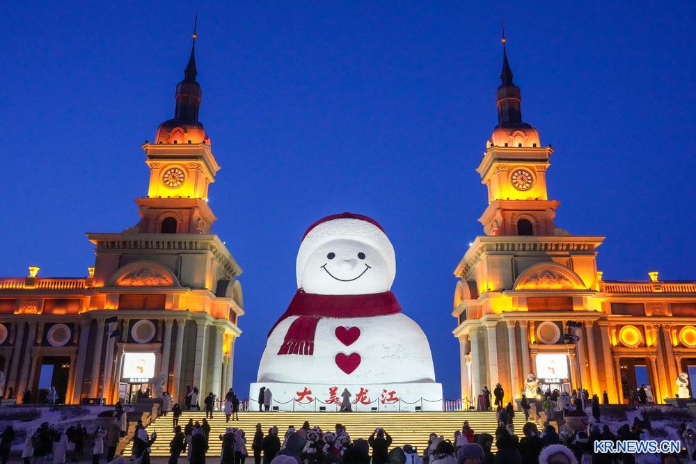 흑룡강성 할빈시가 겨울 관광 성수기에 접어들었다. 할빈시 군력음악공원에 설치된 대형 눈사람은 많은 관광객들의 발길을 사로 잡고 있으며 일몰 후에는 자연광과 조명이 어우러져 눈사람이 한층 더 랑만적이고 매력적인 분위기를 자아낸다.