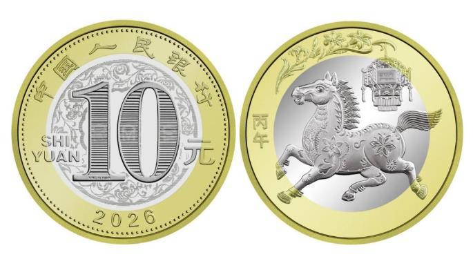 말띠해 새해 기념화페는 이색 구리 합금을 사용, 앞면 디자인은 '중국인민은행', '10원' 글자, 한어병음 'SHIYUAN' 및 발행년도 '2026'에 바탕 무늬로 꽃무늬를 더했다. 기념화페 뒤면 디자인은 중국 전통 종이공예와 장식적 연화 요소가 결합된 말의 형상으로 등불과 원추리 무늬를 배경으로 하고 있으며 화페 왼쪽에는 '병오' 글자가 새겨져 있다.
