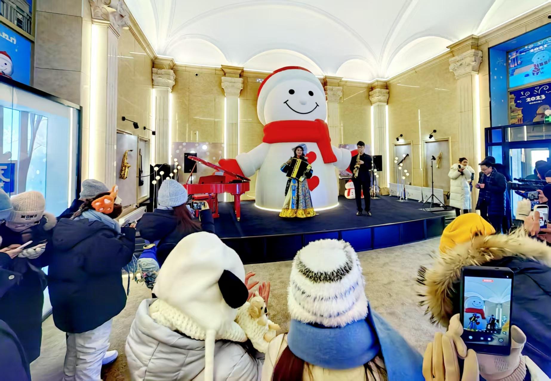 이런 배려는 군력음악공원의 왕홍 대형 눈사람에게서 구체적으로 나타난다. 올해 왕홍 대형 눈사람은 키가 19미터이며 더욱 둥글고 포만된 몸매와 마음을 치유하게 하는 따뜻한 미소로 많은 사람들의 사랑을 받고 있다. 눈사람 콘서트홀에는 클래식과 재즈가 난류처럼 흐른다. 눈사람 문화창의 상점에서는 따뜻한 기억을 휴대할수 있는 선물들이 진렬되여 있다.