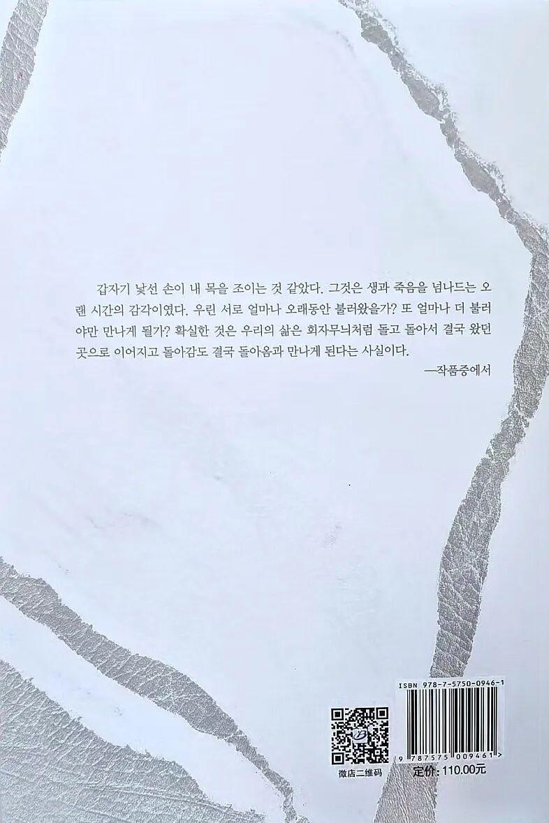 이에 작가는 찰라에 령혼을 휘여잡는 강력한 힘을 온몸으로 느꼈다면서 "우리네 인간사가 그렇지 않은가. 우리는 언제든 돌아오며 또 돌아간다. 빙빙 돌아서 이어지는 회자무늬처럼 우리네 삶은 돌고 돌아서 결국 왔던 곳으로 다시 이어지고 '돌아감'도 결국 '돌아옴'으로 만나게 된다. 그러니 '떠남'도 '돌아옴'이요, '돌아옴'도 '떠남'이다"고 밝히고 있다.