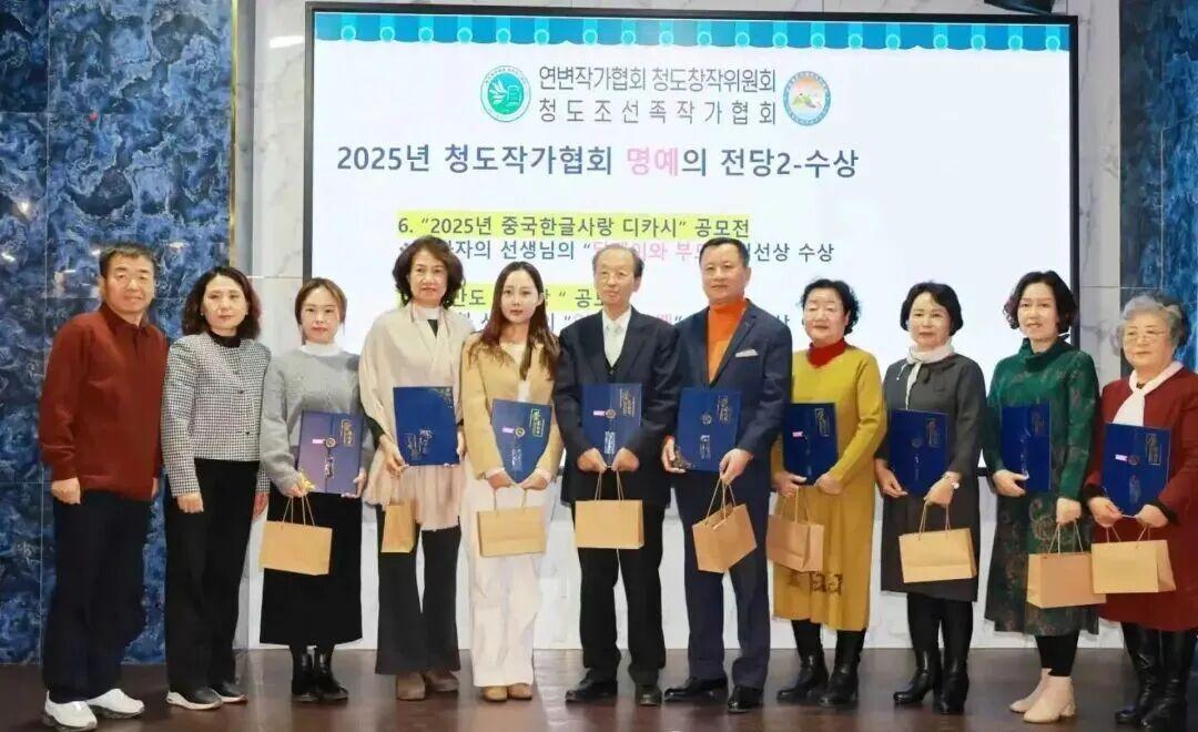 같은 공모전에서 리순선, 리숙, 유미화는 장려상을, 리순자, 석춘화, 김단은 입선상을 받았다. '세계조선족 삶의 이야기' 공모전에서는 석춘화가 최우수상, 리나가 은상, 김성기가 우수상, 박영희가 가작상을 수상했고 최화자는 '2025년 중국한글사랑 디카시' 공모전에서 입선상, 최종원은 한국 월간 '문학세계'에서 신인상을 받았다. 이밖에도 협회는 한강 작가의 노벨문학상 수상을 기념한 녀성문학 세미나, 독서모임, 삼구컵 청도대원학교 제13회 백일장 등 다양한 행사를 성공적으로 개최하며 활발한 활동을 이어갔다.