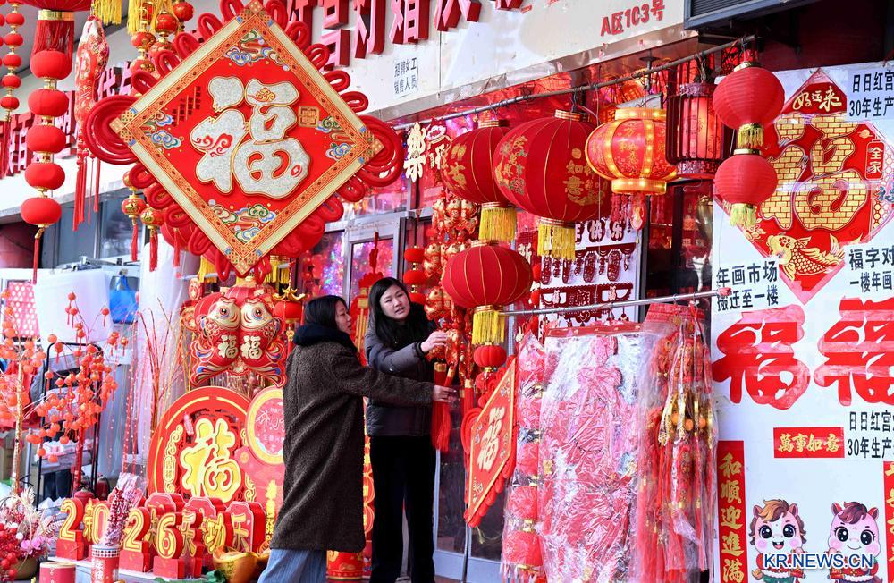 음력설을 앞두고 명절 분위기가 무르익으면서 각지 춘절맞이 용품 시장에 사람들의 발길이 이어지고 있다.
