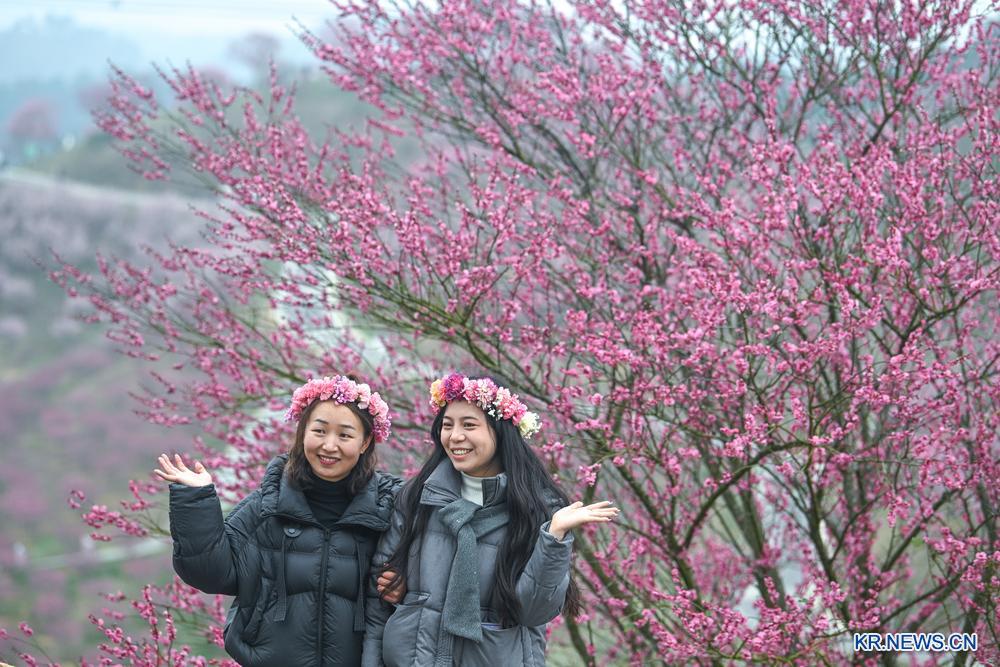 귀주성 귀안신구에 위치한 매화원이 24일 정식으로 개장해 많은 관광객들의 발길이 이어졌다. 한때 황무지였던 언덕길이 매화 테마 명소로 탈바꿈한 귀주 매화원에는 5만여그루의 매화 270여종이 자라고 있다.
