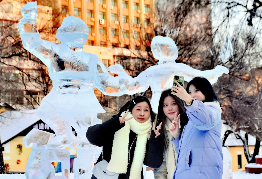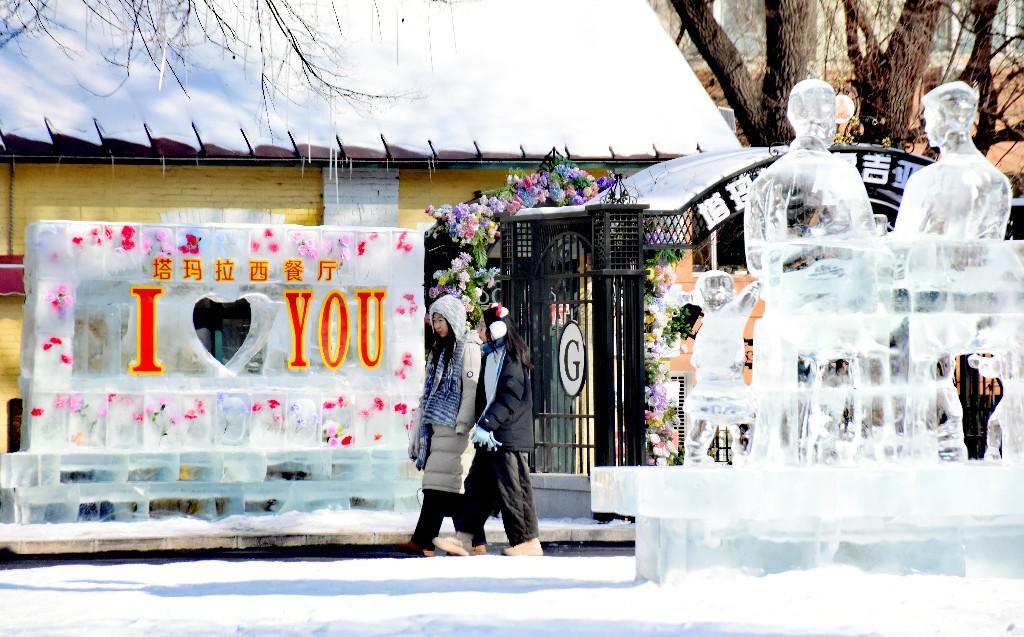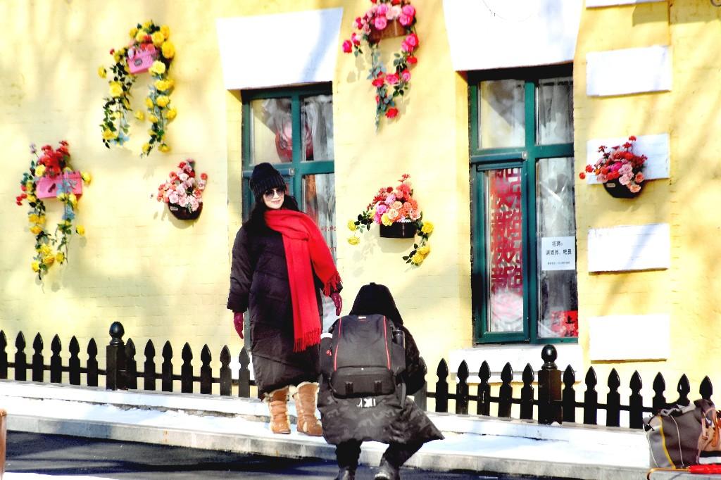 겨울철, 할빈시 남강구 화원가 력사문화거리에는 매일 많은 관광객들이 방문해 사진을 찍고 있다. 여기에는 귀엽고 멍청한 '곰', 거대한 맥주통, 아름다운 풍차 등이 있어 관광객들에게 훌륭한 사진 배경을 제공한다.
