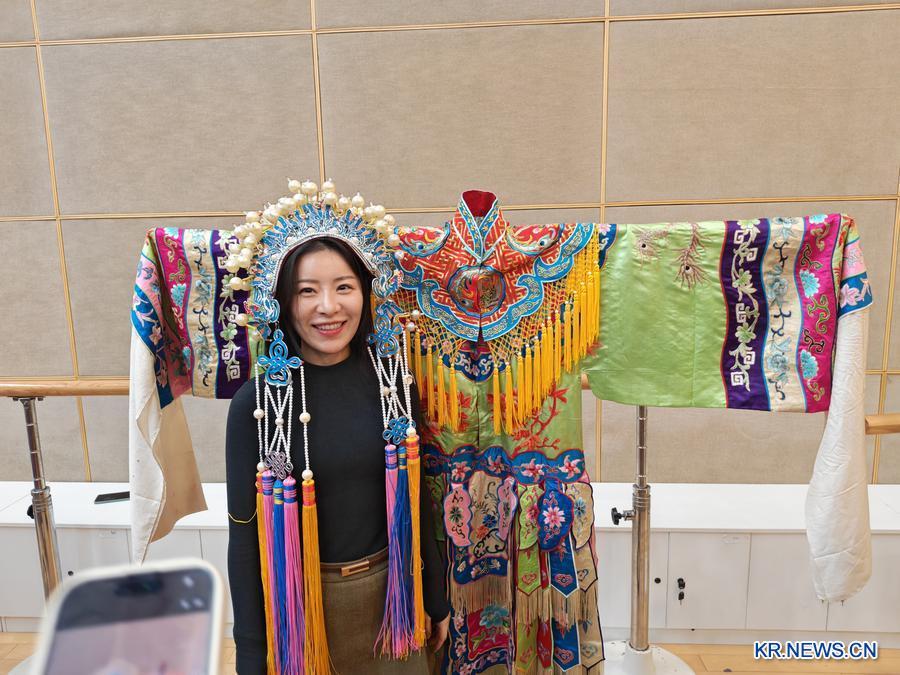 지난 29일 합비 려극(안휘성 지역의 전통 희곡)원에서 전통 루극 소품을 직접 착용해본 박소희씨. (취재원 제공)